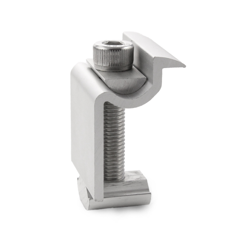 Clema capăt pentru monaj panou fotovoltaic Compatibil cu: RAY032 Material: aluminiu 6005-T5 Dimensiuni : 40x44mm Compatibil cu panouri de la 35mm