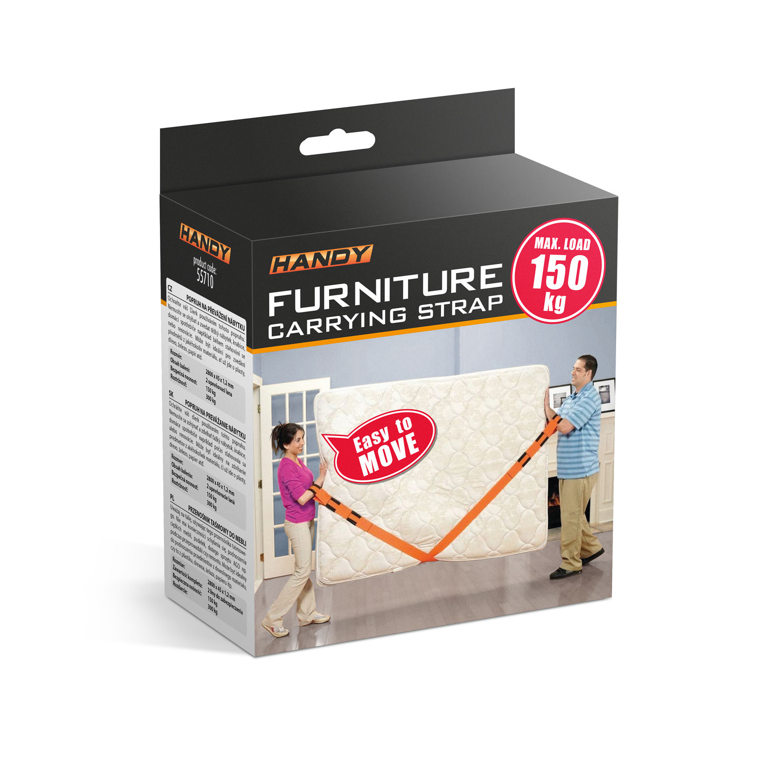 Menajează-ţi spatele prin utilizarea acestei chingi de transport. Cu ocazia mutării, sau a renovărilor, nu mai este necesar să te apleci când ridici mobilier greu, cutii, sau aparate electrocasnice grele.