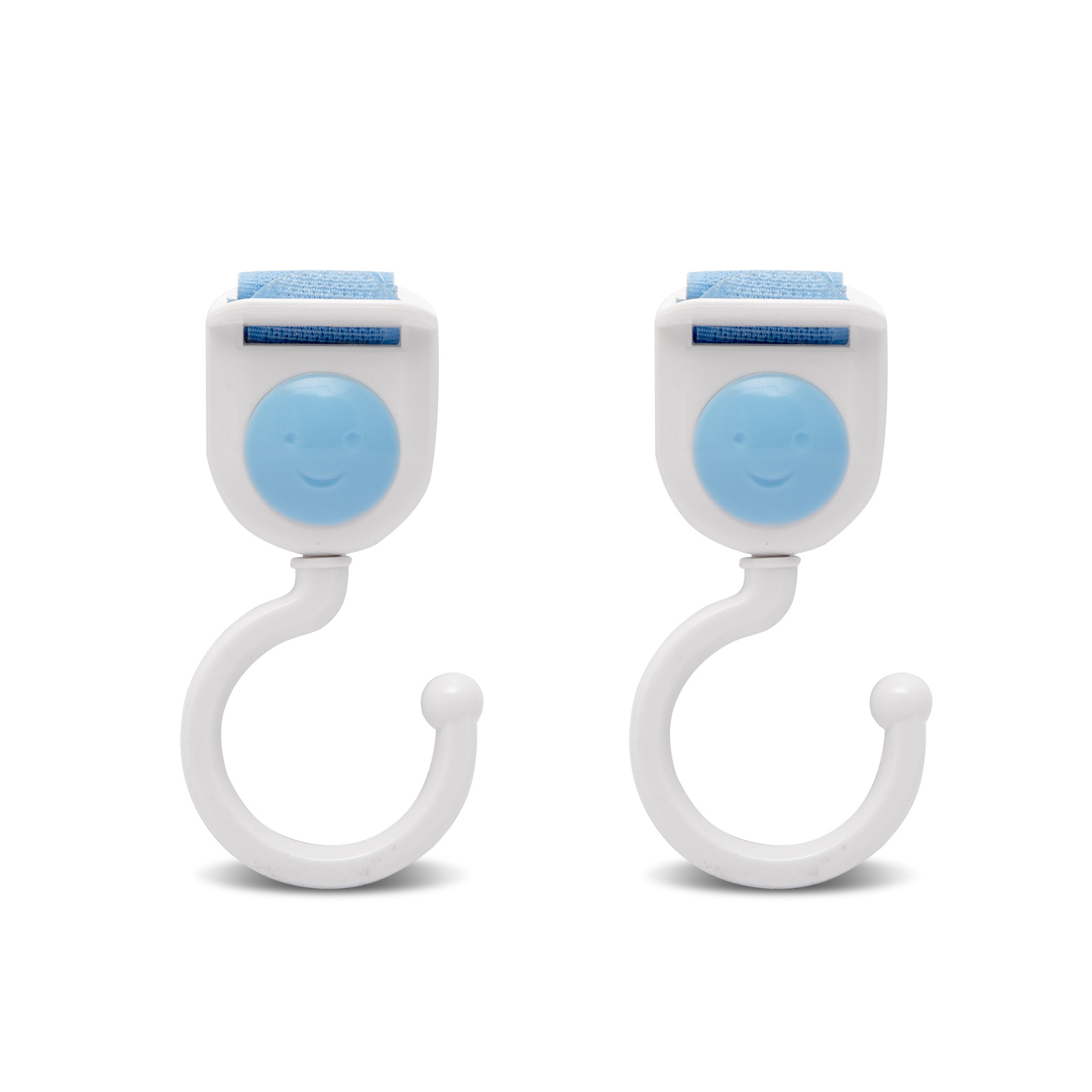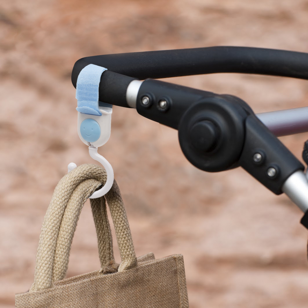 Carlig universal cu fixare prin scai pt agatare pe carucior copii, etc. Se poate folosi pt. agatarea de genti, jucarii, etc. 2 culori: albastru, roz.