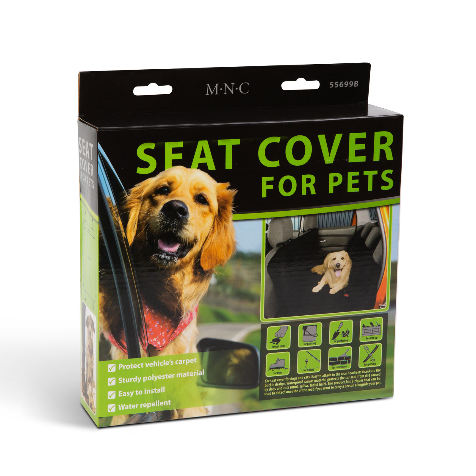 Husa de protectie-scaun in primul rand pt. caini si pisici. Usor de fixat pe tetierele din spate datorita executiei cu catarame. Fiind executat din tesatura impermeabila, protejeaza tapiteria de impuritatile generate de animale. (noroi, saliva, par, etc...) Ideal pt. vehiculele cu portbagaj mic, unde nu exista alta posibilitate de amplasare a animalelor de companie de cat pe bancheta din spate. Produsul este echipat si cu fermoar pt. cazul in care aveti si pasager langa animale.