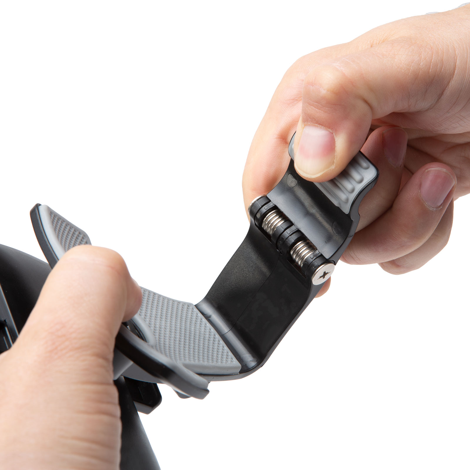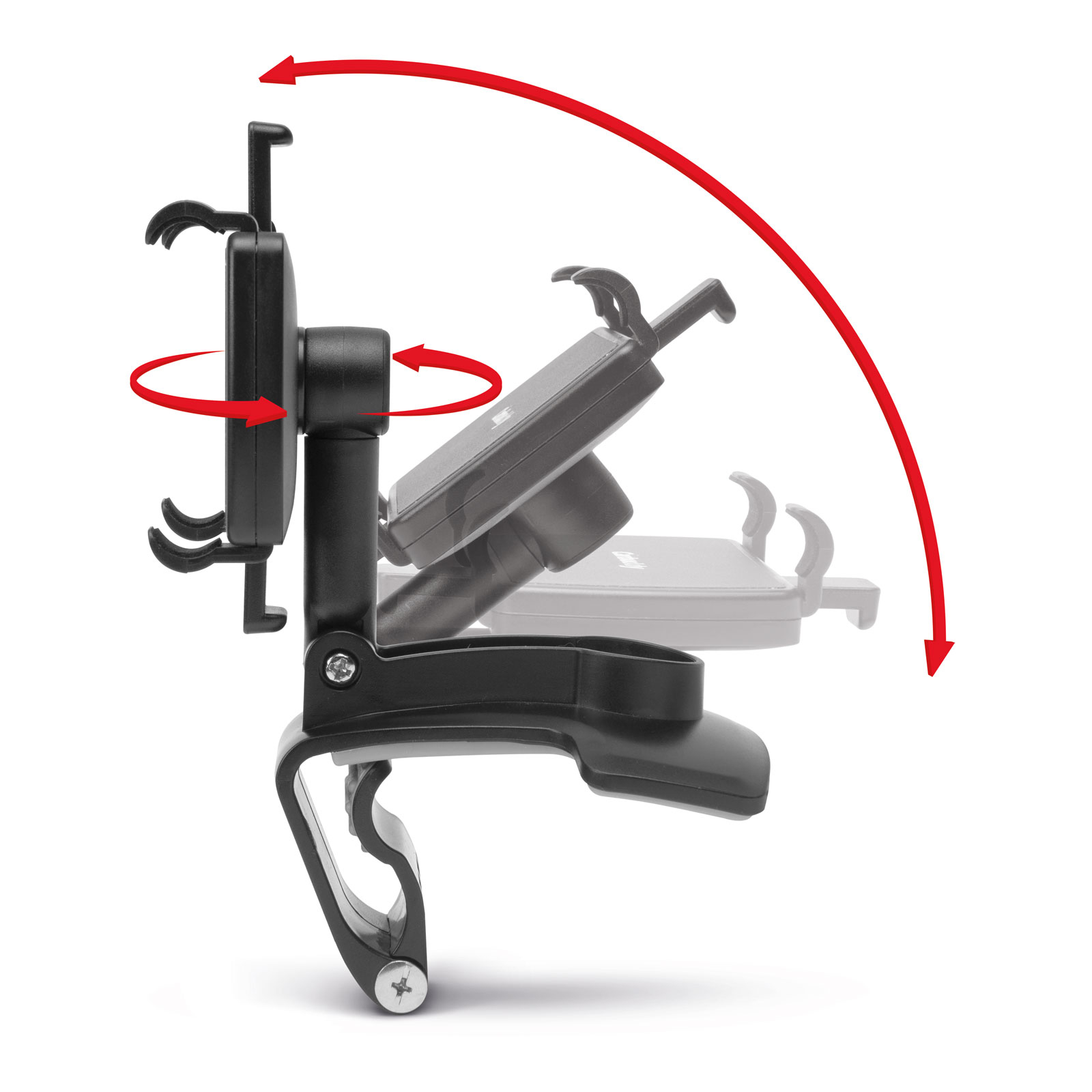 Avantajul principal este că nu trebuie fixat de parbriz cu o ventuză și nu impiedică circulația liberă a aerului prin grilajele de ventilație. Poate fi transferat într-o altă mașină dintr-o singură mișcare. Arcul puternic de fixare menține consola stabilă în toate condițiile.