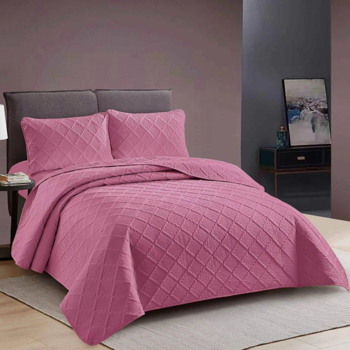 Setul include și două fețe de pernă, care completează perfect aspectul patului tău. Fiecare față de pernă este realizată cu aceeași atenție la detalii, cu matlaseu în romburi și finisaje impecabile, adăugând un plus de confort și stil. Aceste fețe de pernă sunt atât decorative, cât și funcționale, fiind ideale pentru a crea un decor coerent și rafinat.