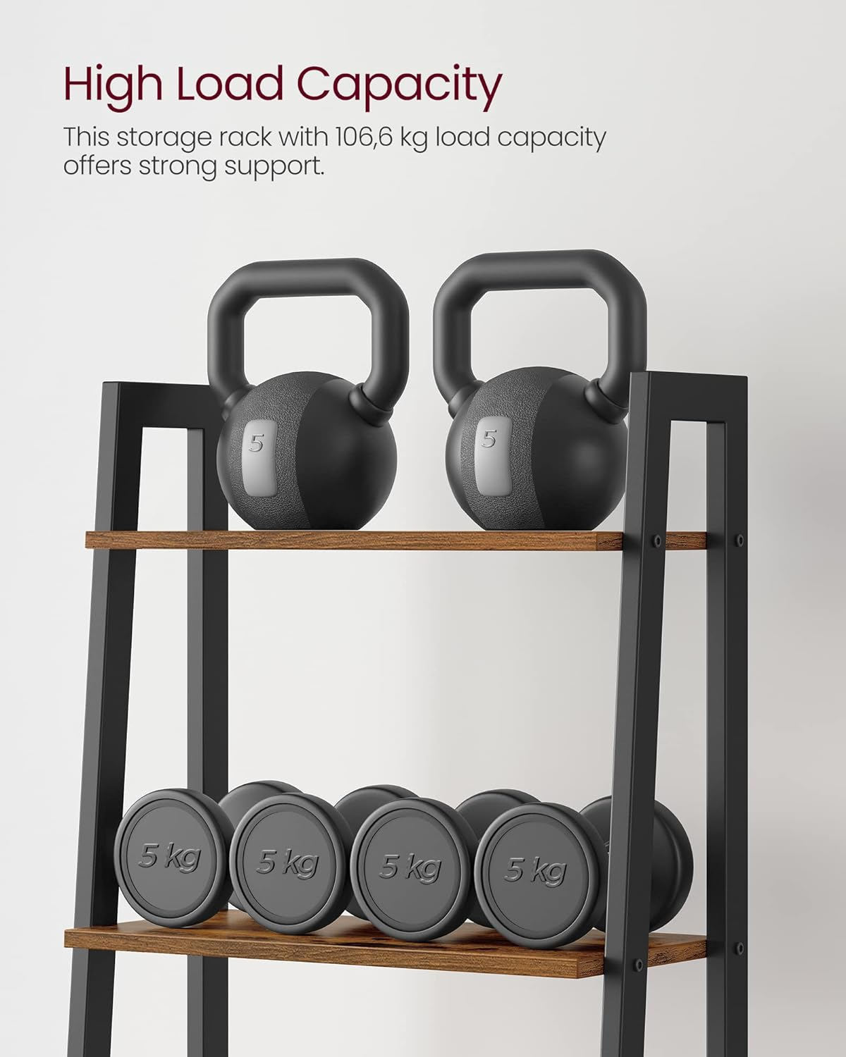 Specificatii: Culoare: Maro rustic, negru Material: Placi aglomerate, otel Dimensiunea produsului: 56 x 34 x 172 cm (L x l x i) Greutatea produsului: 15,3 kg Max. Capacitate de incarcare statica a fiecarui nivel: 5 kg Despre acest articol Proiectat dintr-un cadru solid, intarit de bare in forma de X, echilibrat de picioare reglabile si asigurat de un kit anti-inclinare, acest raft este foarte stabil.Realizat cu un cadru solid din otel si placi aglomerate de calitate, acest raft cu 5 nivele este durabil pentru o utilizare pe termen lung.Acest raft de depozitare cu dimensiuni de 32 x 56 x 172 cm ofera mult spatiu, ocupand in acelasi timp putin spatiu pe podea. Rafturile sunt la o distanta de 33 cm unul fata de celalalt si tin chiar si obiectele mai inalte.Folositi-l ca raft de depozitare in camera de zi, ca suport pentru plante pe balcon, ca raft de carti in biroul de acasa sau ca raft de depozitare in bucatarie - oriunde l-ati amplasa, este intotdeauna util.Piesele numerotate si instructiunile usor de urmat va vor ajuta sa finalizati asamblarea acestui raft independent fara efort.