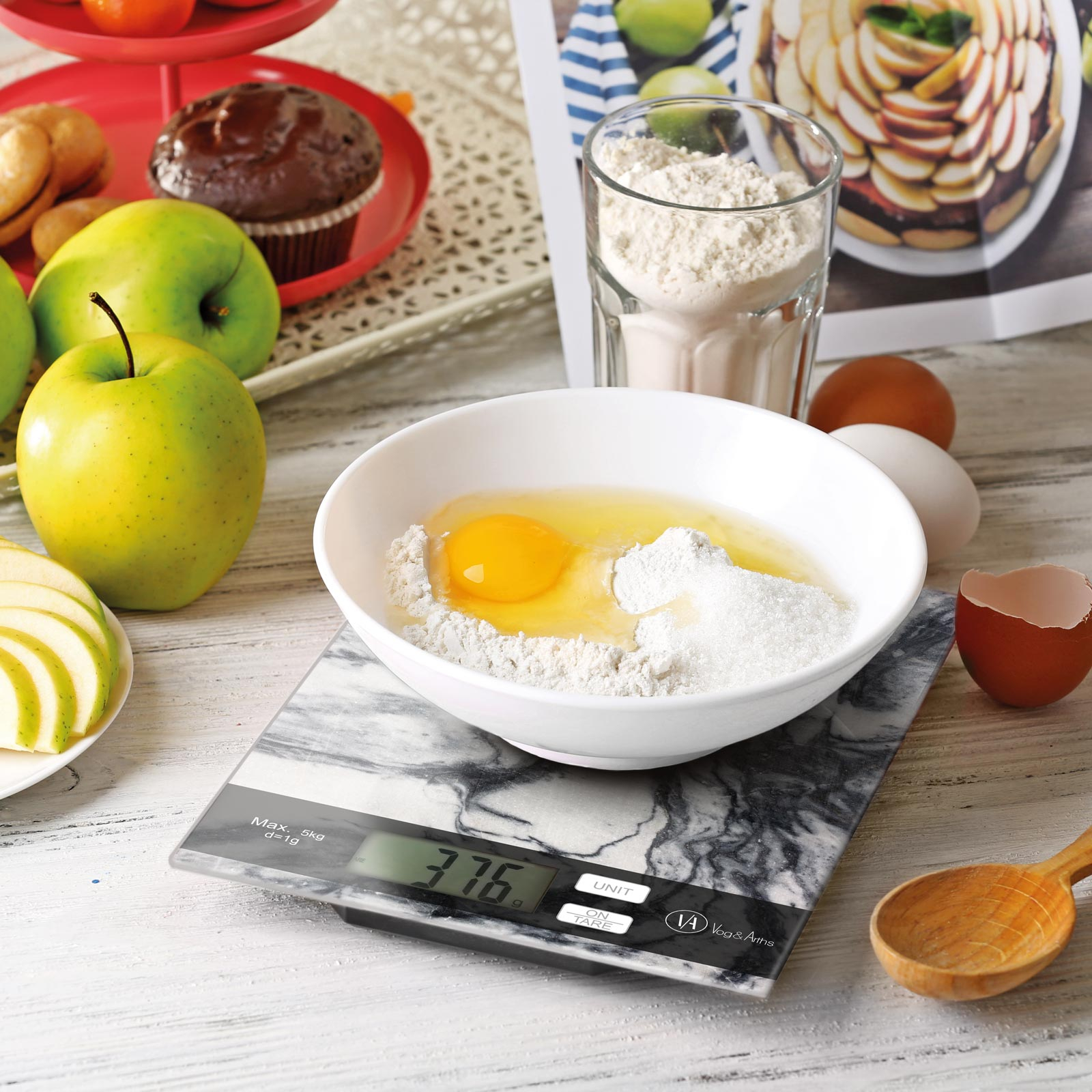 Cantar practic de bucatarie, un accesoriu esential pentru coacere si gatit. Măsurați exact cantitatea de ingrediente cerută de rețetă. Această cântare nu este doar precisă, ci și estetică și poate fi un plus la modă pentru orice bucătărie.