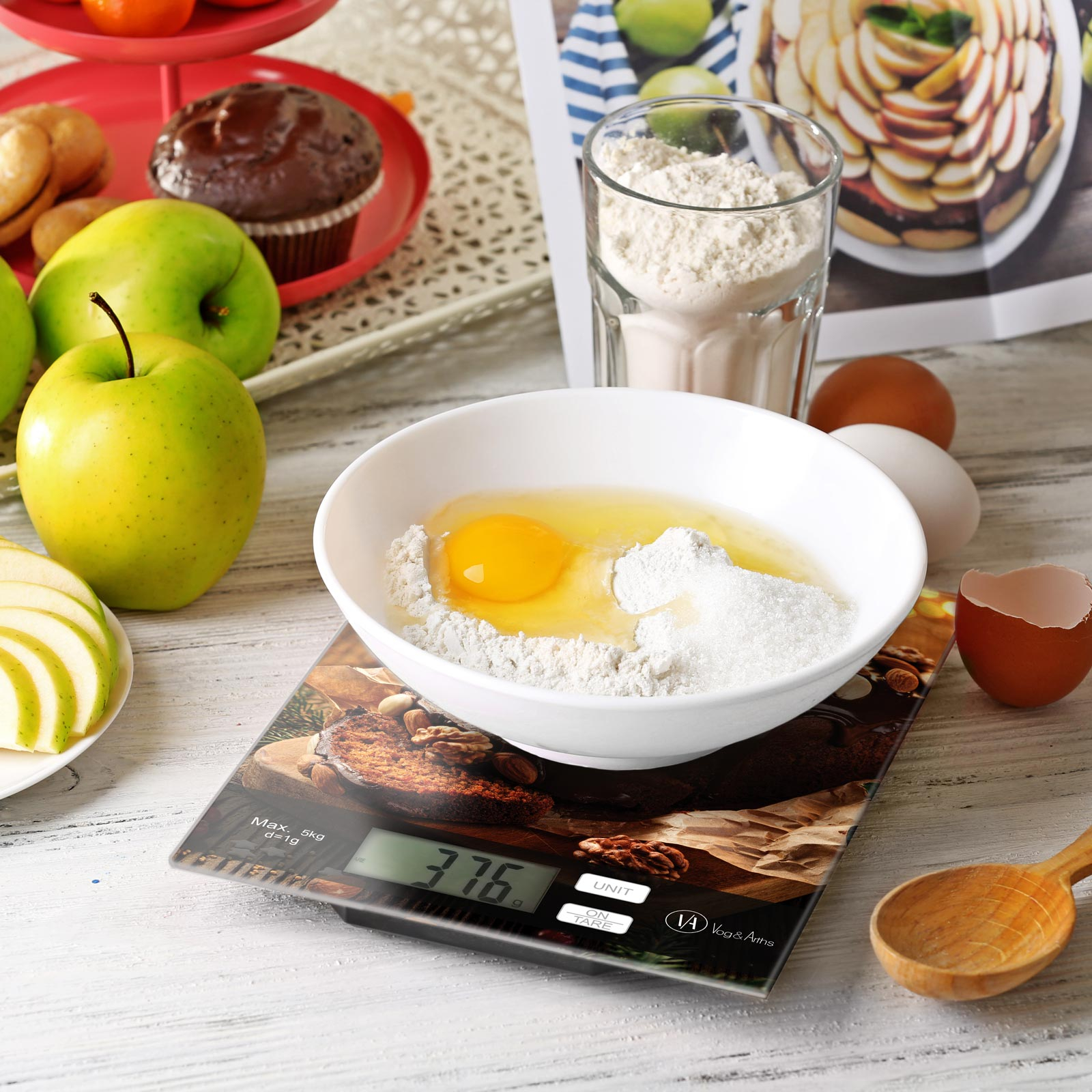 Cantar practic de bucatarie, un accesoriu esential pentru coacere si gatit. Măsurați exact cantitatea de ingrediente cerută de rețetă. Această cântare nu este doar precisă, ci și estetică și poate fi un plus la modă pentru orice bucătărie.