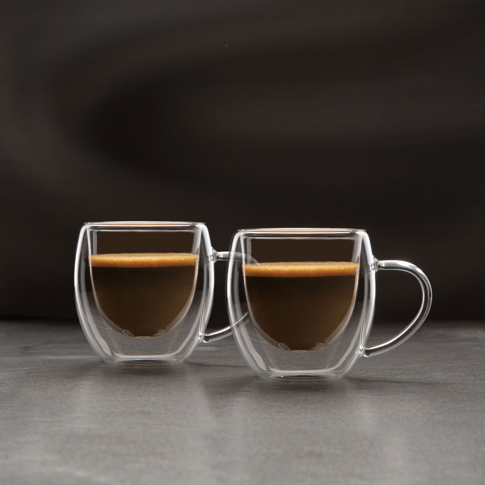 Set din sticla borosilicat cu pereti dubli, cu aspect modern pentru placerea de a bea cafea. Ideal pentru cafea si bauturi calde si reci. Datorita peretelui dublu din sticla, bauturile calde nu va ard mainile.