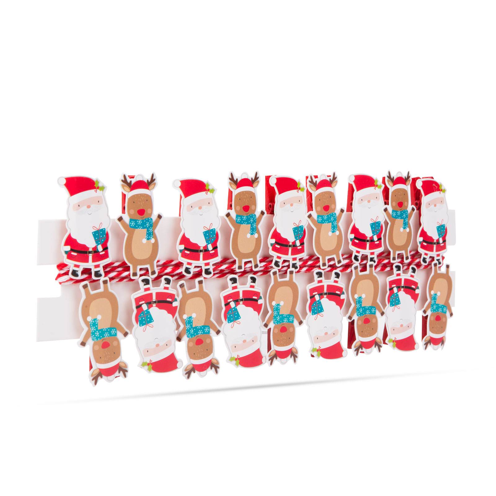Decorează-ți casa folosind cleme și panglici vesele pentru figuri de Moș Crăciun. Clema mică, dar puternică, din lemn, poate fi folosită pentru orice.Le poți folosi pentru a atașa diverse decorațiuni de perdele sau chiar la cadouri folosind banda inclusă în pachet.