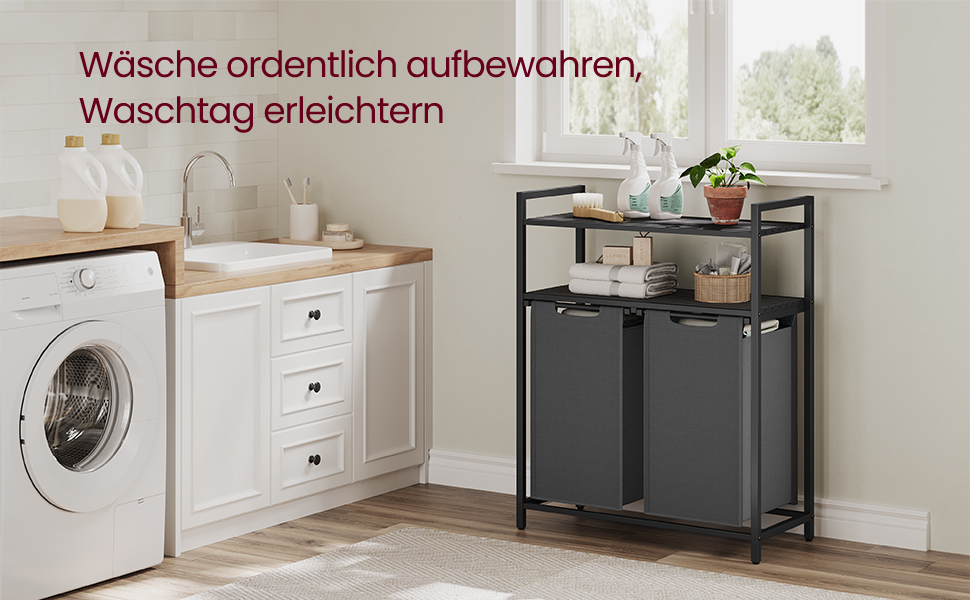Detalii despre produs: Culoare: Negru-gri Material: MDF (panou de fibre de densitate medie), otel, tesatura oxford Dimensiuni totale: 73 x 33 x 92 cm (L x l x i). Dimensiunea fiecarui sac: 30 x 30 x 30 x 51 cm (L x l x a). Greutate: 9,3 kg Capacitate de incarcare statica totala: 30 kg Capacitatea de incarcare statica a fiecarui sac: 10 kg Capacitatea de incarcare statica a fiecarui raft: 20 kg Despre acest articol Capacitatea totala a acestui sistem de sortare a rufelor: 92 litri (per compartiment 46 litri). Cele 2 compartimente va ajuta sa va depozitati rufele separat pe culori sau tipuri de rufe.Rafturi duble, spatiu dublu de depozitare pentru detergentii dvs., articolele de toaleta etc.; designul cu lamele asigura o circulatie optima a aerului pentru a evita mirosul de la rufele murdare.Sustinuti cu o placa de baza din plastic, sacii au inchizatori comode cu Velcro, astfel incat ii puteti scoate sau indeparta cu usurinta pentru a duce rufele la masina de spalat rufe.Tuburi solide din otel de 2 x 2 cm, panouri MDF de inalta calitate - sortatorul de rufe este solid si rezistent. Sacii sunt confectionati din tesatura Oxford hidrofuga. Cele 4 picioare reglabile sporesc stabilitatea.Asezati cosul de rufe in spalatorie, baie sau dormitor. Cele 2 buzunare si 2 rafturi va ajuta sa depozitati rufele la vedere, pastrand in acelasi timp obiectele esentiale la indemana.