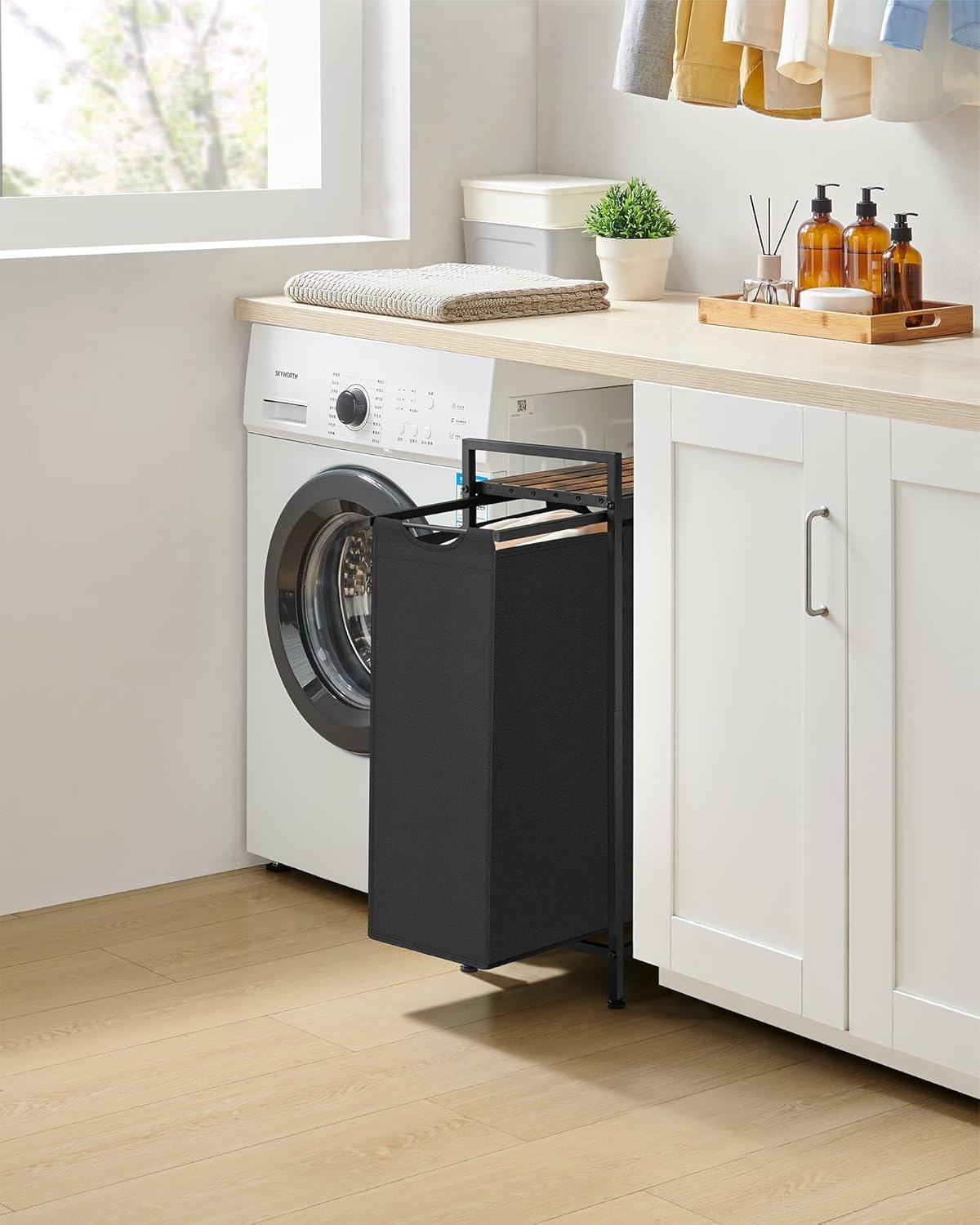 Specificatii tehnice Brand: VASAGLE Model: BLH001B01 Tip produs: Cos rufe Capacitate: 47 L Dimensiuni: 42 x 22 x 75 cm Material: MDF, otel, material textil Oxford Culoare: Maro rustic/negru Caracteristici speciale: Sac textil detasabil, raft superior, kit anti-rasturnare, picioare reglabile Greutate suportata: Pana la 10 kg pe raft Scurta descriere Cos de rufe compact, cu design rustic si structura metalica stabila, ideal pentru spatii mici. Sacul textil este detasabil si usor de transportat, iar raftul superior ofera loc suplimentar pentru depozitare. Caracteristici principale Design compact pentru economisirea spatiului Sac textil detasabil cu baza rigida Raft superior pentru depozitarea detergentilor sau accesoriilor Structura stabila din otel si MDF rezistent Picioare reglabile pentru stabilitate pe orice suprafata Potrivit pentru baie, dormitor sau camera de spalatorie