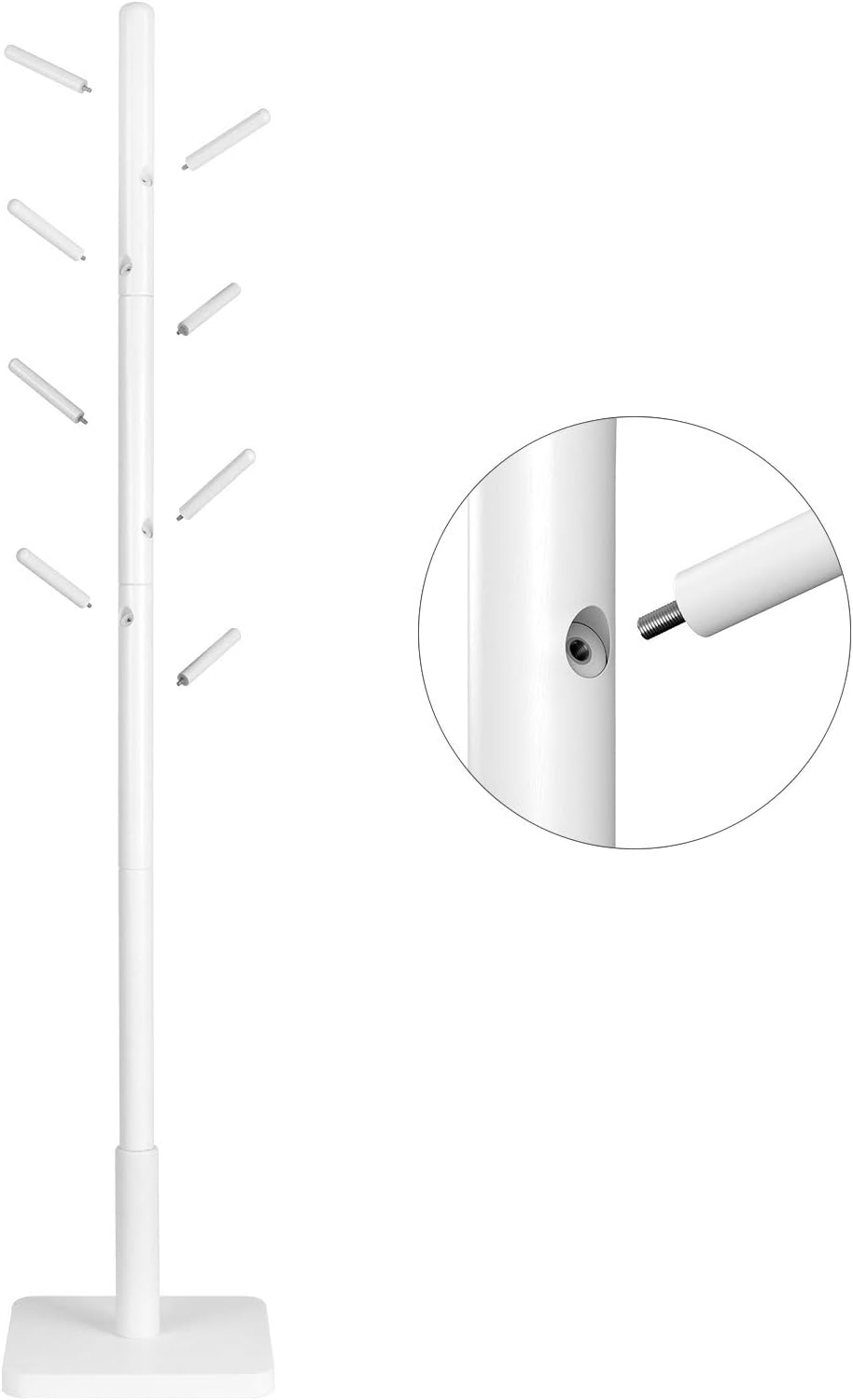 Marca: VASAGLE Culoare: Alb Material: Lemn Dimensiunile produsului: 30D x 30W x 175H cm Despre acest articol Acest cuier este proiectat cu piese filetate incorporate si nu necesita unelte suplimentare pentru asamblare. Pur si simplu rasuciti carligele in loc urmand instructiunile clare furnizate si sunteti gata!Construit din lemn de cauciuc solid si acoperit cu un finisaj de vopsea in trei straturi, acest cuier independent este durabil in calitatea sa si ofera o suprafata neteda, prietenoasa cu hainele.Suportul de haine reglabil, cu 3 optiuni distincte de inaltime, raspunde unei varietati de nevoi ale utilizatorilor. Se potriveste perfect pentru fiecare membru al familiei, optimizand utilizarea si adaptandu-se fara efort la stilul dvs. de viata.Suportul pentru haine are un stalp principal solid cu diametrul de 4 cm, unit ferm cu ramurile. Sustinut de o baza patrata stabila, acesta sta ferm si sustine cu incredere pana la 24 kg in total, gazduind 3 kg per carlig.Cu designul sau elegant, minimalist, acest suport pentru haine se integreaza perfect in orice decor. Este mai mult decat o piesa functionala - este un strop de eleganta pentru holul, dormitorul, biroul sau camera dvs.