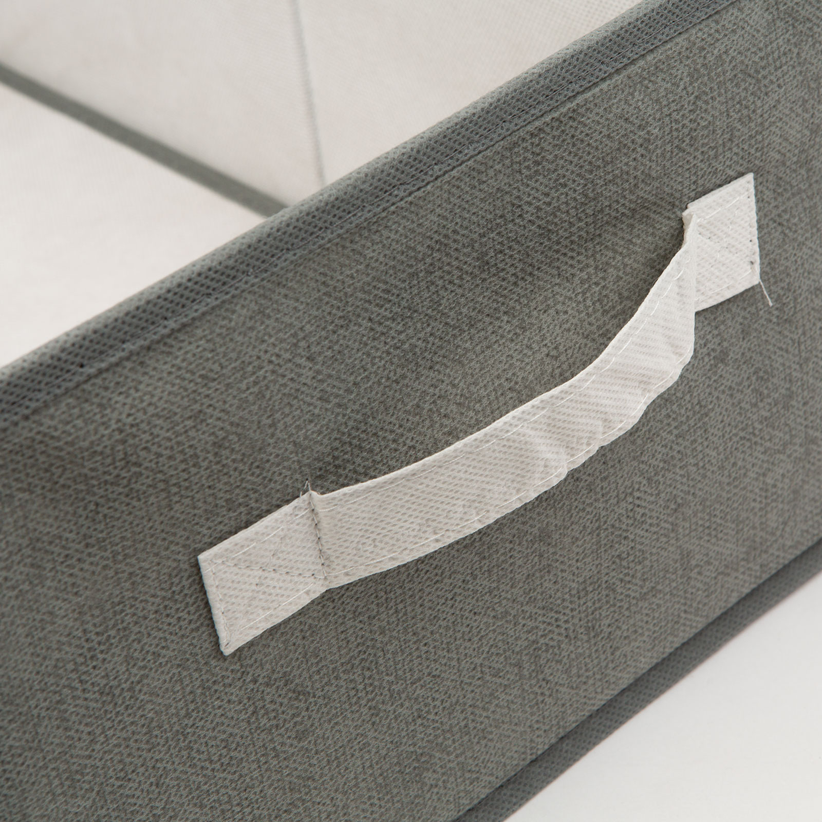 Descoperiți soluțiile noastre practice și elegante de depozitare! Această cutie de depozitare este alegerea perfectă pentru a menține ordinea și organizarea în casa ta. Structura ușoară, dar durabilă a cutiei de depozitare asigură că va fi fiabilă pe termen lung pentru organizare. Stratul exterior este realizat din țesătură de calitate, care nu numai că oferă un aspect estetic, dar este și rezistent și ușor de curățat. Rigiditatea structurii interne este asigurată de o foaie solidă de carton multistratificată. Datorită dimensiunii convenabile a cutiei de depozitare, se potrivește cu ușurință pe rafturi, dulapuri sau chiar sub pat. Acest lucru vă permite să utilizați la maximum spațiul disponibil, păstrând în același timp obiectele importante organizate și ușor accesibile. O cutie de depozitare din țesătură poate fi alegerea perfectă pentru depozitarea îngrijită a hainelor, pantofilor, jucăriilor, cărților sau a oricărui alt articol. Atunci cand nu este folosita, depozitarea intr-un spatiu restrans este asigurata de fermoarul situat in partea de jos, care se poate inchide la utilizare.