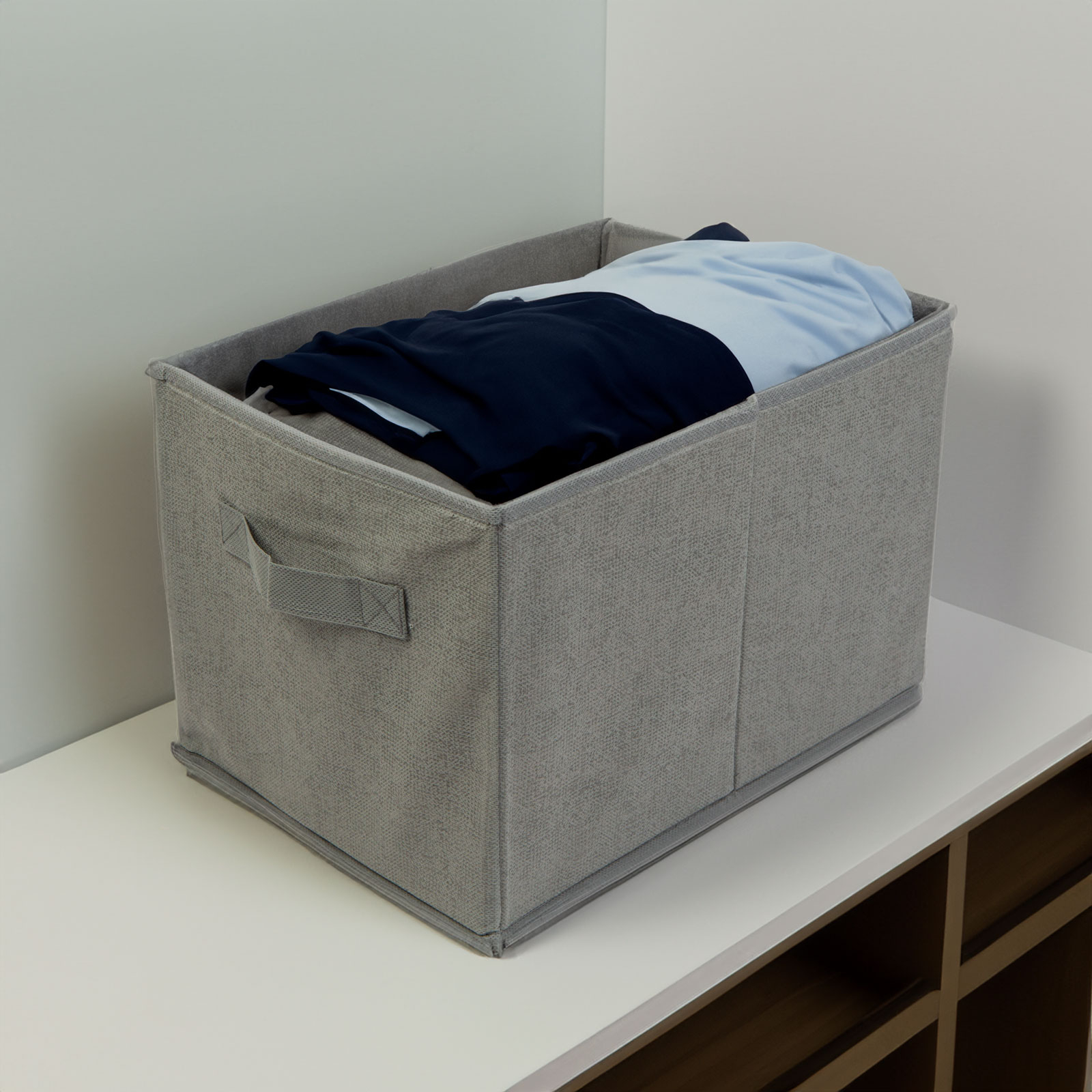 Descoperiți soluțiile noastre practice și elegante de depozitare! Această cutie de depozitare este alegerea perfectă pentru a menține ordinea și organizarea în casa ta. Structura ușoară, dar durabilă a cutiei de depozitare asigură că va fi fiabilă pe termen lung pentru organizare. Stratul exterior este realizat din țesătură de calitate, care nu numai că oferă un aspect estetic, dar este și rezistent și ușor de curățat. Rigiditatea structurii interne este asigurată de o foaie solidă de carton multistratificată. Datorită dimensiunii convenabile a cutiei de depozitare, se potrivește cu ușurință pe rafturi, dulapuri sau chiar sub pat. Acest lucru vă permite să utilizați la maximum spațiul disponibil, păstrând în același timp obiectele importante organizate și ușor accesibile. O cutie de depozitare din țesătură poate fi alegerea perfectă pentru depozitarea îngrijită a hainelor, pantofilor, jucăriilor, cărților sau a oricărui alt articol. Atunci cand nu este folosita, depozitarea intr-un spatiu restrans este asigurata de fermoarul situat in partea de jos, care se poate inchide la utilizare.