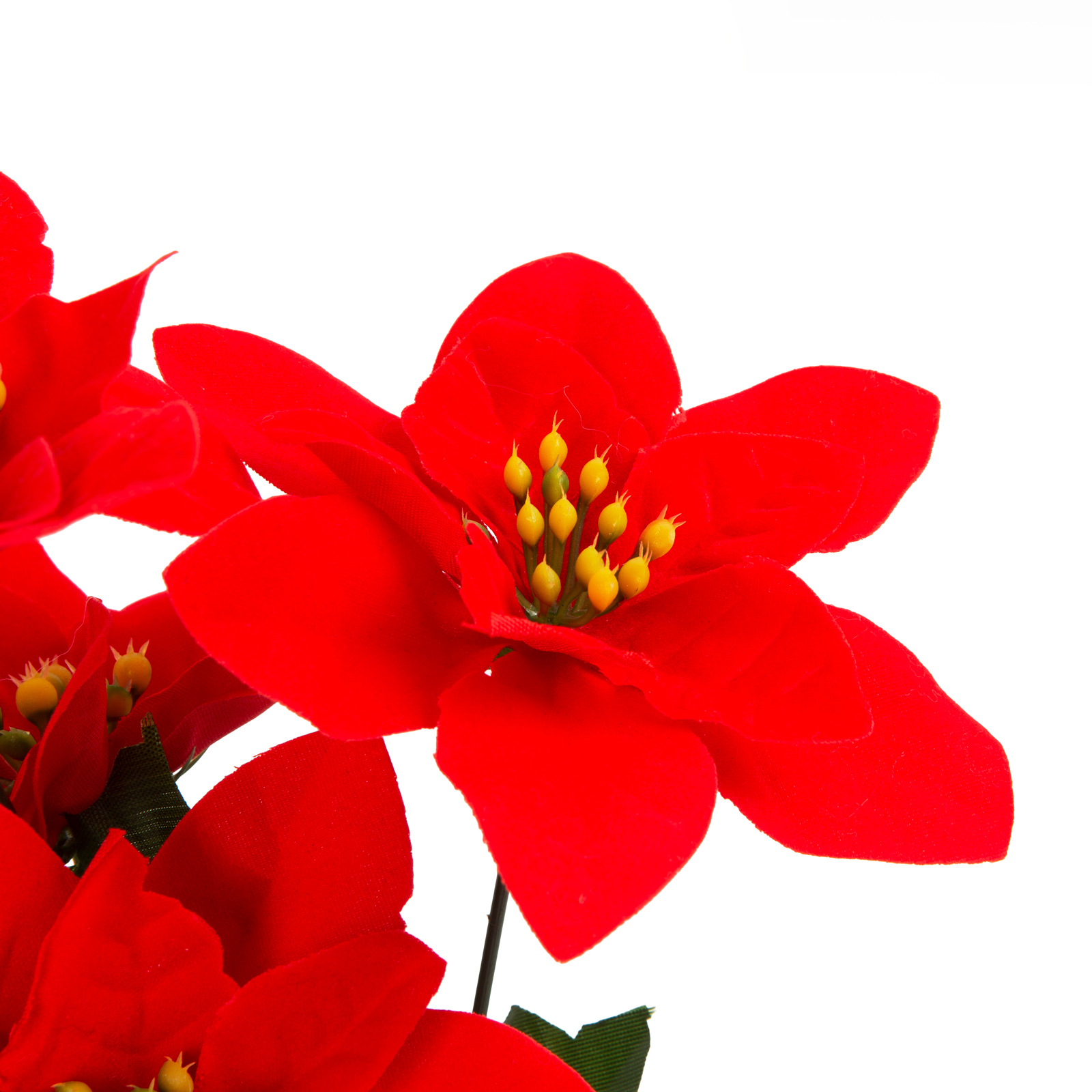 Poinsettia a devenit una dintre plantele de apartament simbol ale Crăciunului. O copie realistă a unei flori vii te va răsfăța cu floarea ei în fiecare zi și îți aduce bucurie.