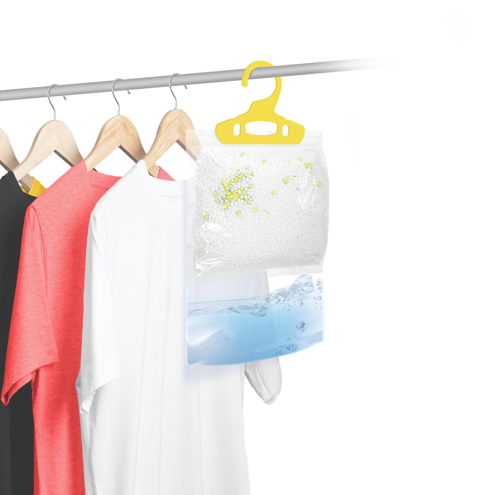 Pentru un aer sănătos și proaspăt în apartamentul nostru și pentru a evita mucegaiul, trebuie să reglăm temperatura și umiditatea. Acest produs oferă un ajutor excelent în ceea ce privește aceasta din urmă, care colectează umezeala din aerul din cameră cu ajutorul pernei din pachet în locurile umede. Datorită agățătoarei, poate fi plasat chiar și într-un dulap sau în baie, împiedicând astfel ca hainele să devină mucegăite.