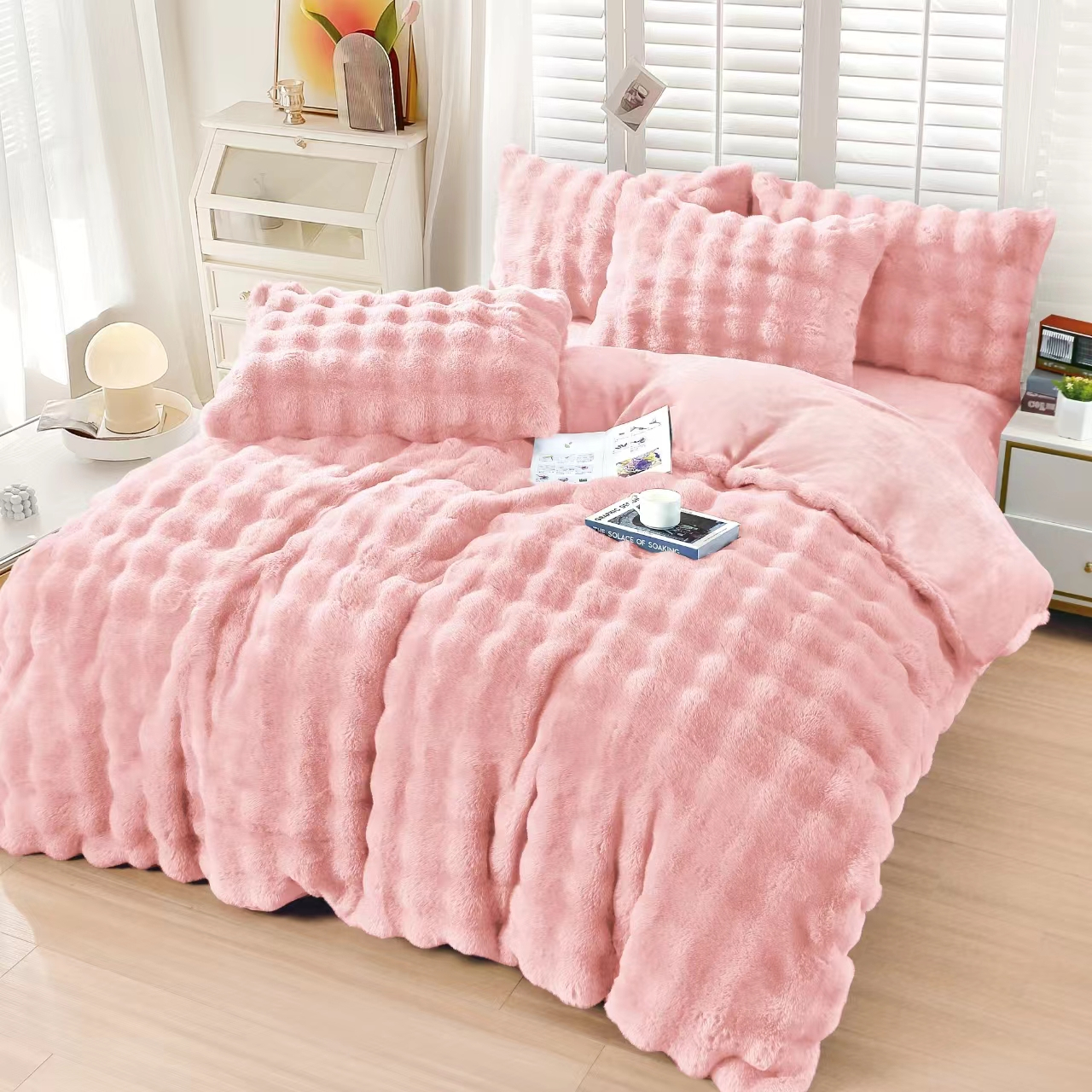 1. Material: Realizate din microfibră de înaltă calitate, au o textură pufoasă și densă, menținând căldura în timpul nopților reci.
