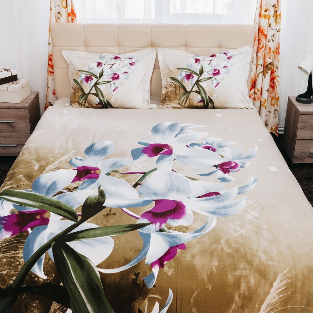 Pentru a menține culorile vii, este bine să întoarceți pe dos lenjeria și fețele de pernă când le spălați. Lenjeriile care au nuanțe închise se spală separat. Curățarea chimică nu este posibilă.