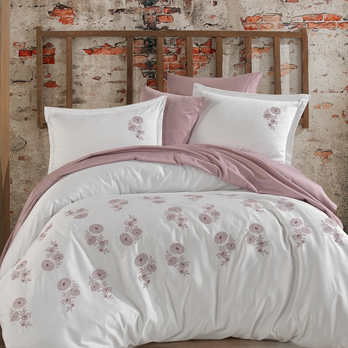 Lenjerii de pat satin de lux premium cu broderii, realizate din materiale de înalta calitate, cu broderii discret aplicate pentru a completa eleganta desavârsita a setului de pat.