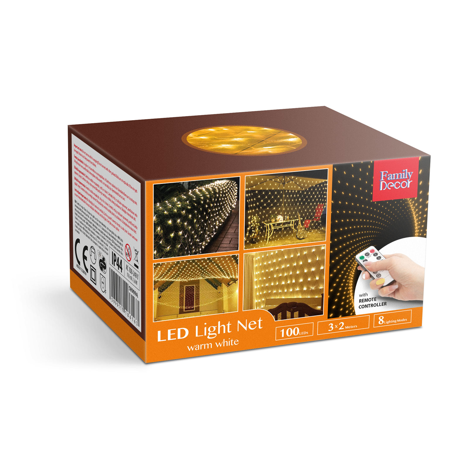 Fă-ți ferestrele și terasa casei mai frumoase cu această plasă luminoasă LED. Rețeaua de 190 de becuri este alimentată de o sursă de curent alternativ și poate fi folosită în aer liber datorită indicelui de protecție IP44.