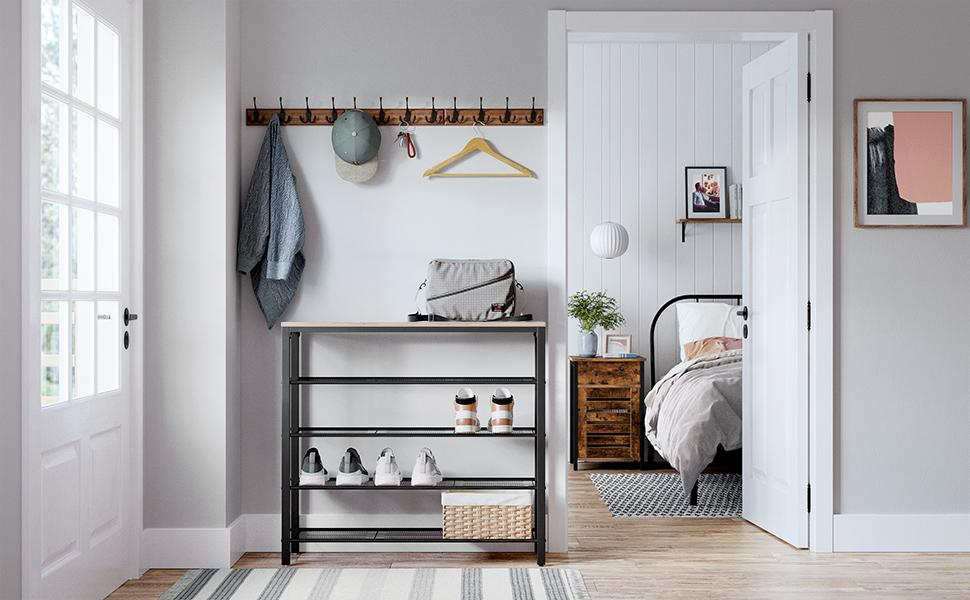 VASAGLE Raft de pantofi metalic, cu 4 nivele plus polita superioara, stil industrial, 100x30x93cm, gri si negru