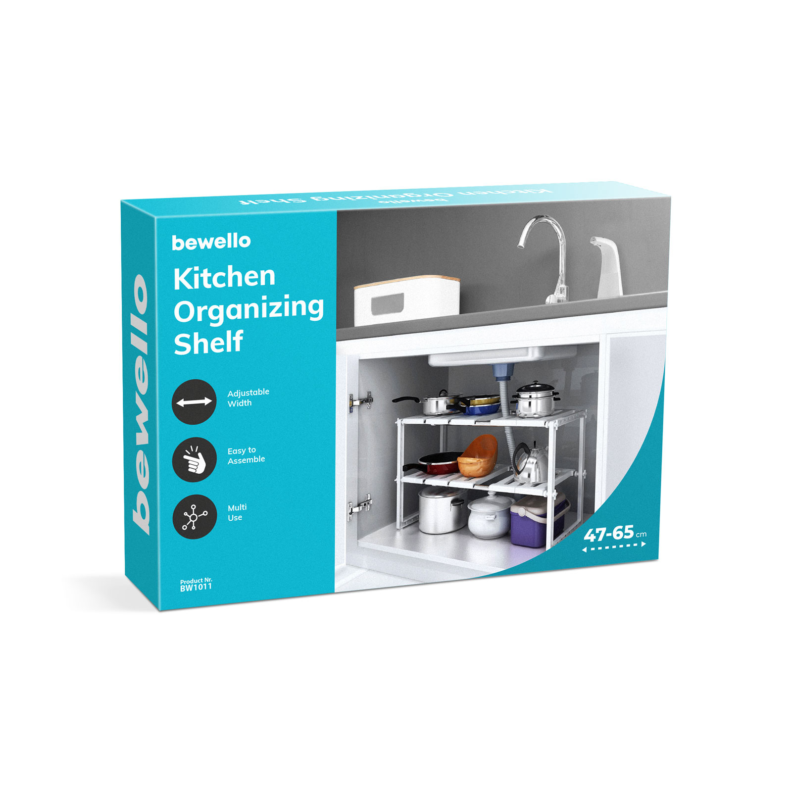 Înălțimea și lățimea rafturilor pot fi modificate oricum, astfel că organizatorul se va potrivi în orice dulap. Ideal pentru utilizare în locuri în care nu este posibilă instalarea unui raft tradițional darotiă unuei surse de apă, a unei scurgeri sau a unui sifon.