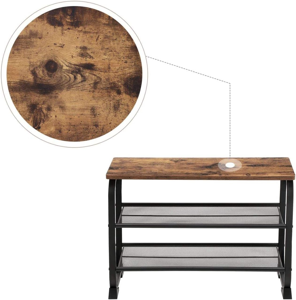 Culoare: maro Dimensiuni: 66 x 45 x 30 cm Inaltimea scaunuluiL 45 cm Despre acest articol Acest suport de pantofi va va pune in valoare casa, fara colturi ascutite, cu o suprafata superioara cu aspect de lemn de epoca si un cadru de fier curbat - pur si simplu perfect rotunjit. Raftul care economiseste spatiu nu este potrivit doar pentru zonele de intrare mici. Ofera, de asemenea, spatiu de depozitare suplimentar in camera de zi sau in garaj. Sustinand o sarcina de pana la 90 kg, aceasta piesa de mobilier este perfecta si pe post de banca. Picioarele din plastic special concepute pentru aceasta banca sunt, de asemenea, extrem de rezistente si va protejeaza podeaua de zgarieturi.Asamblarea acestui suport pentru pantofi este foarte simpla. Asadar, nu ezitati si echipati-va casa cu aceasta piesa de mobilier flexibila!