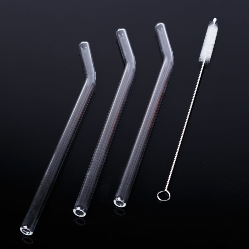Setul contine 3 paie curbate din sticla transparenta si o perie de curatat. O alegere excelentă deoarece sunt reutilizabile și oferă o alternativă ecologică la paiele tradiționale din hârtie din plastic. Paiele de sticla sunt cunoscute pentru durata de viata indelungata, asa ca le puteti folosi mai mult timp cu satisfactie. Sunt ideale pentru toate tipurile de băuturi, fie că este vorba de cocktailuri, băuturi răcoritoare, băuturi calde și reci.