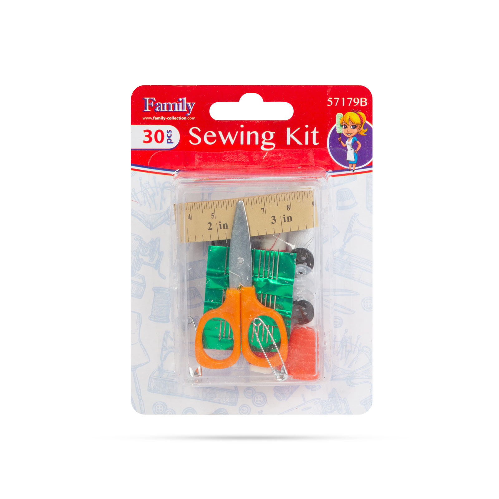 Cu 3 fire colorate diferite, foarfece de călătorie, 2 știfturi de siguranță (3,2 cm), bandă de măsurare de 64 cm, 12 ace de cusut, 9 butoni, degetar din plastic pentru a preveni accidentele și o cutie compactă din plastic pentru portabilitate.