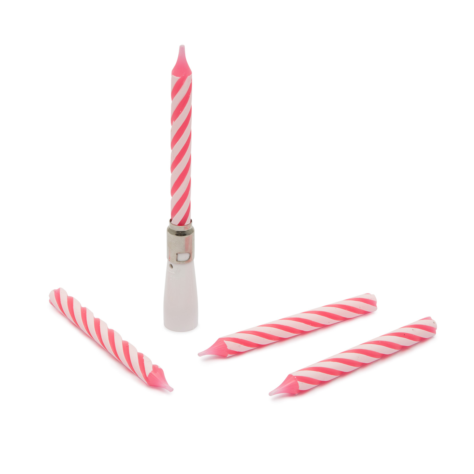 Lumanari muzicale colorate in dungi albastre sau roz, cu suport. Rotind suportul, rasuna binecunoscuta melodie Happy Birthday. Lumanarea este de 8 cm lungime, Continut: 4 buc Culori: albastru sau roz Lungime lumanare: 8cm