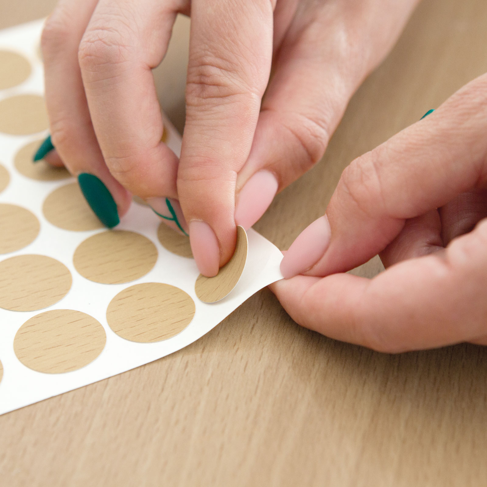 Ideale pentru acoperirea oricăror șuruburi de pe mobilă. Ușor de aplicat datorita spatelui autoadeziv.
