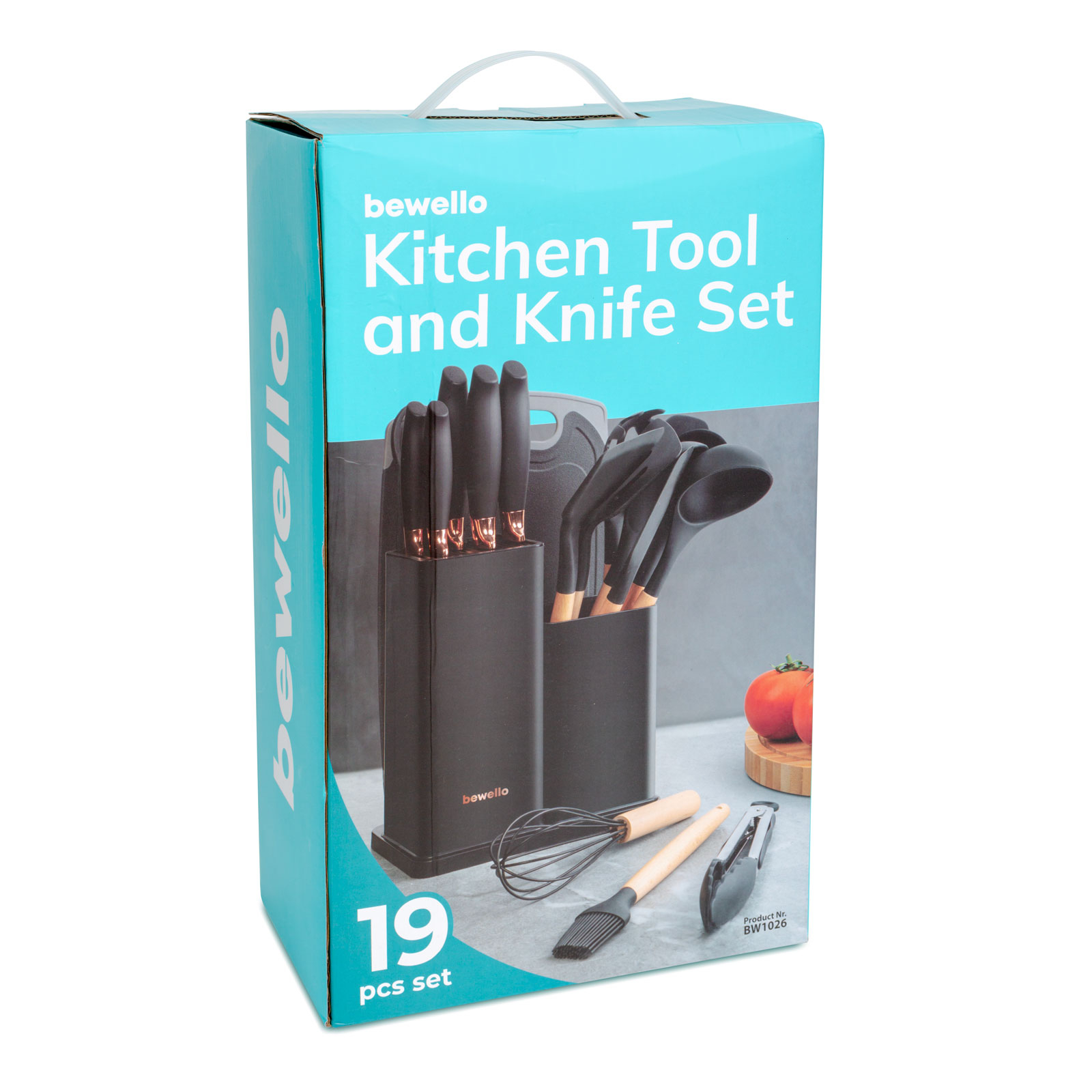 Acest set de instrumente de bucătărie și cuțite din 19 piese poate fi o adevărată comoară în orice bucătărie. Setul nu oferă doar cuțite de înaltă calitate, dar include și o varietate de alte unelte de bucătărie pentru a vă ajuta să îndepliniți toate sarcinile cu ușurință.