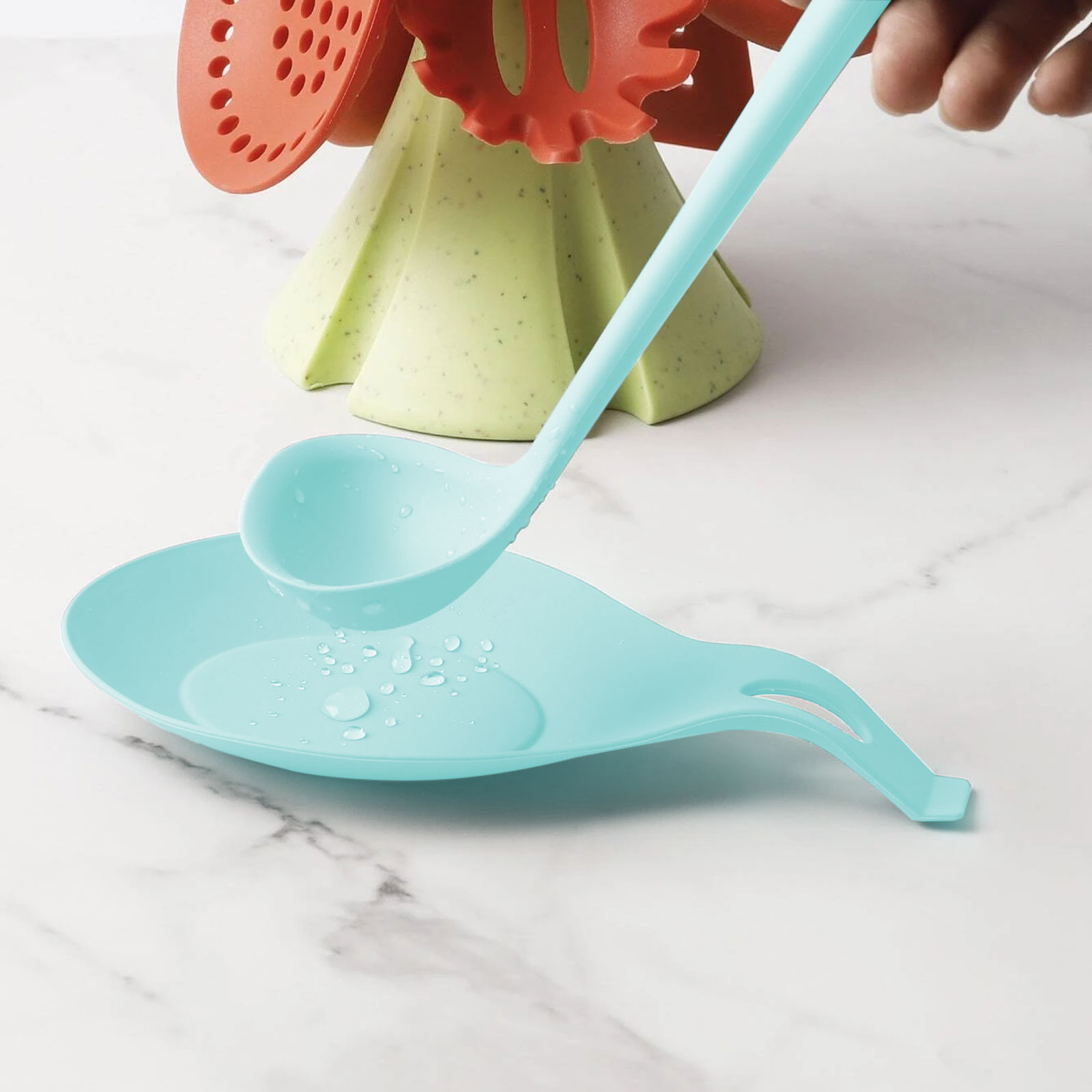 Acest suport din silicon colectează grăsimea și lichidul care picură din lingura de lemn, astfel încât să poți lucra pe o masă curată și ordonată.