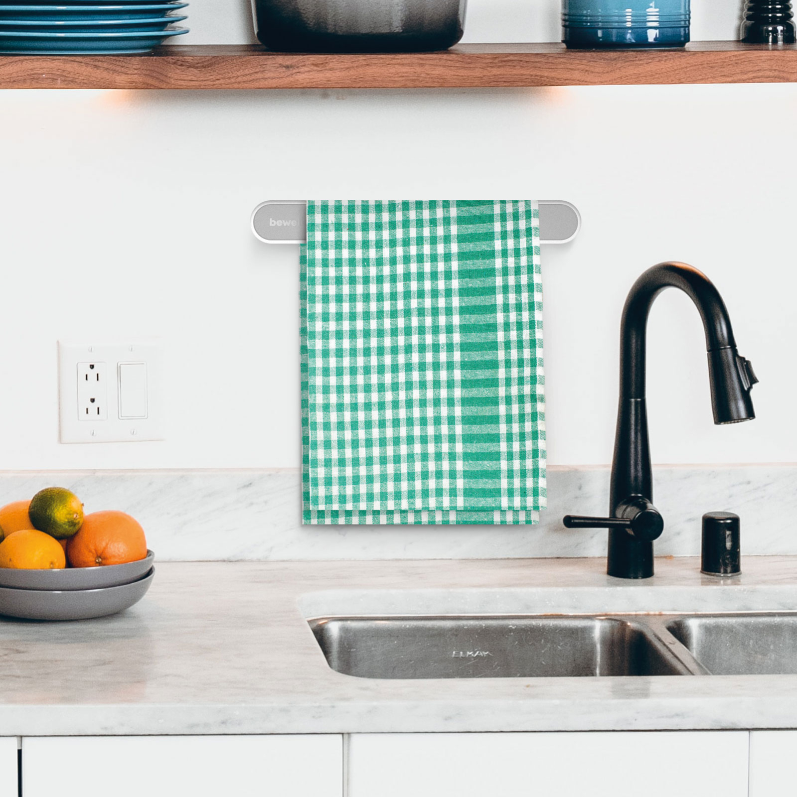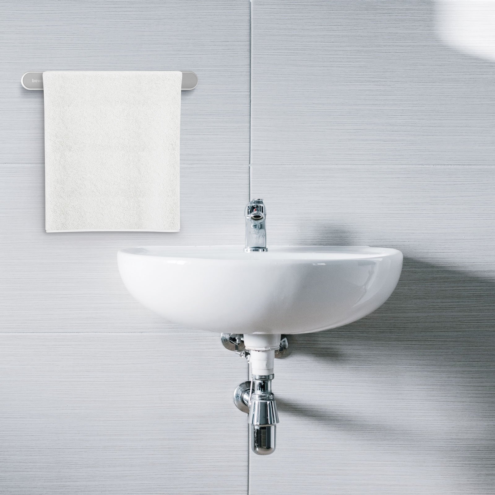 Suport pentru prosoape cu o suprafață puternic autoadezivă. Poate fi lipit pe orice suprafață netedă, preferabil faianță sau sticlă.