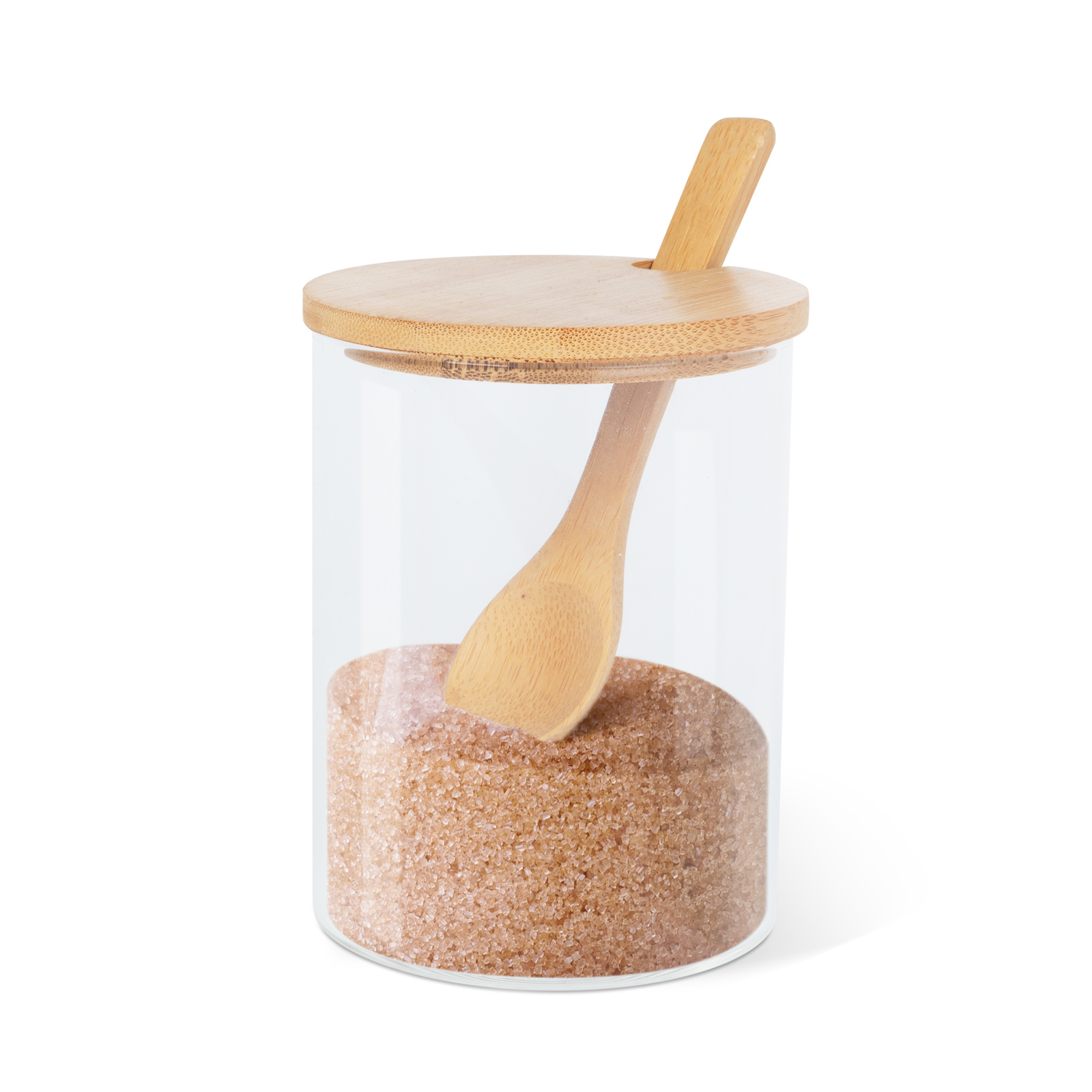 Recipient pentru condimente din sticlă transparentă cu capac din lemn și lingură. Potrivit pentru depozitarea oricăror condimente, sare și zahăr. Datorită suportului transparent, puteți urmări cu ușurință cantitatea de condimente și puteți găsi condimentul de care aveți nevoie. Poate fi, de asemenea, etichetat dacă este necesar.