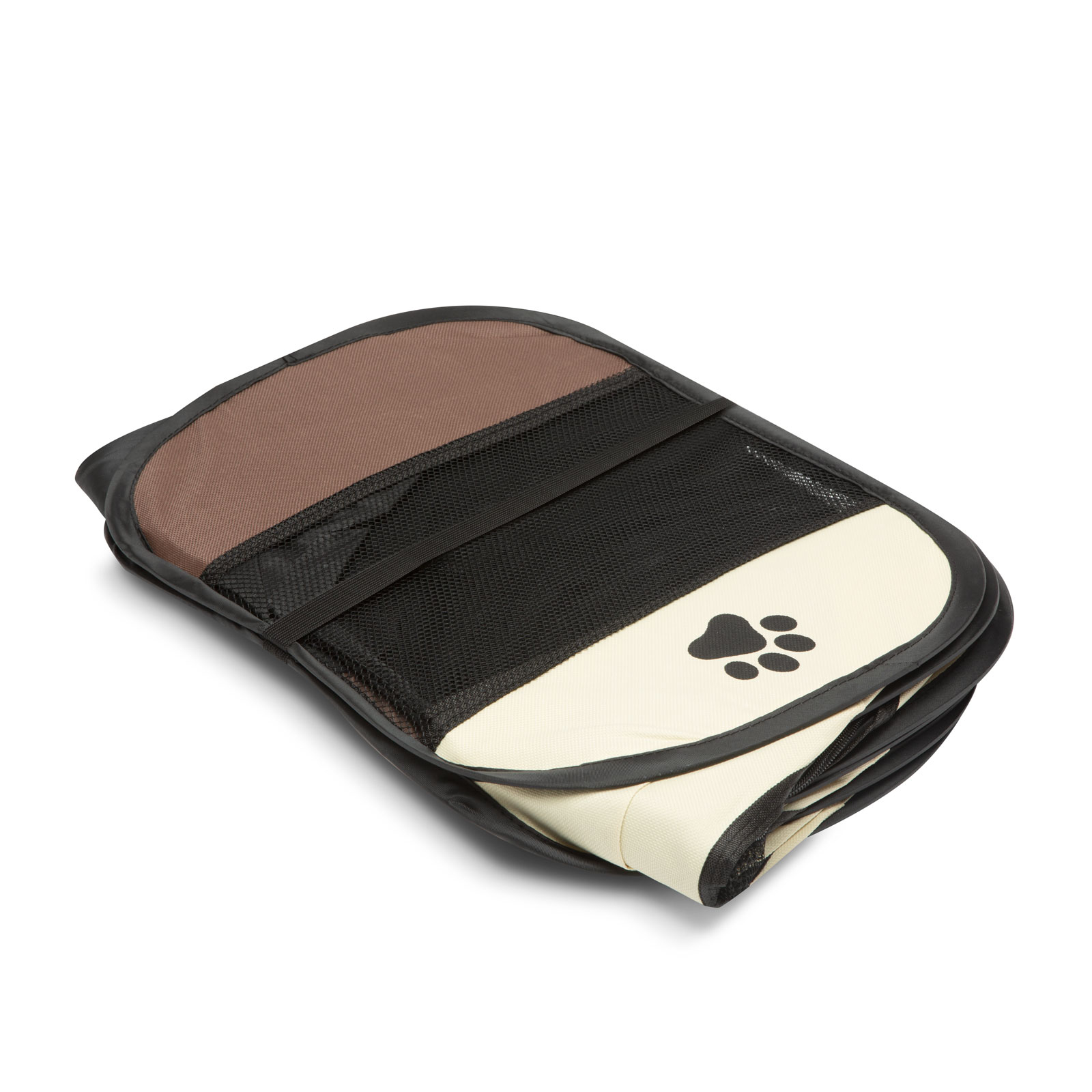 O alegere ideală atunci când aștepți oaspeți sau mergi la un hotel, de exemplu. Culcușul este ușor de instalat și de împchetat. Partea superioară poate fi desfăcută, iar peretele lateral este extrem de bine ventilat, astfel încât cățelul tău nu se va simți închis.