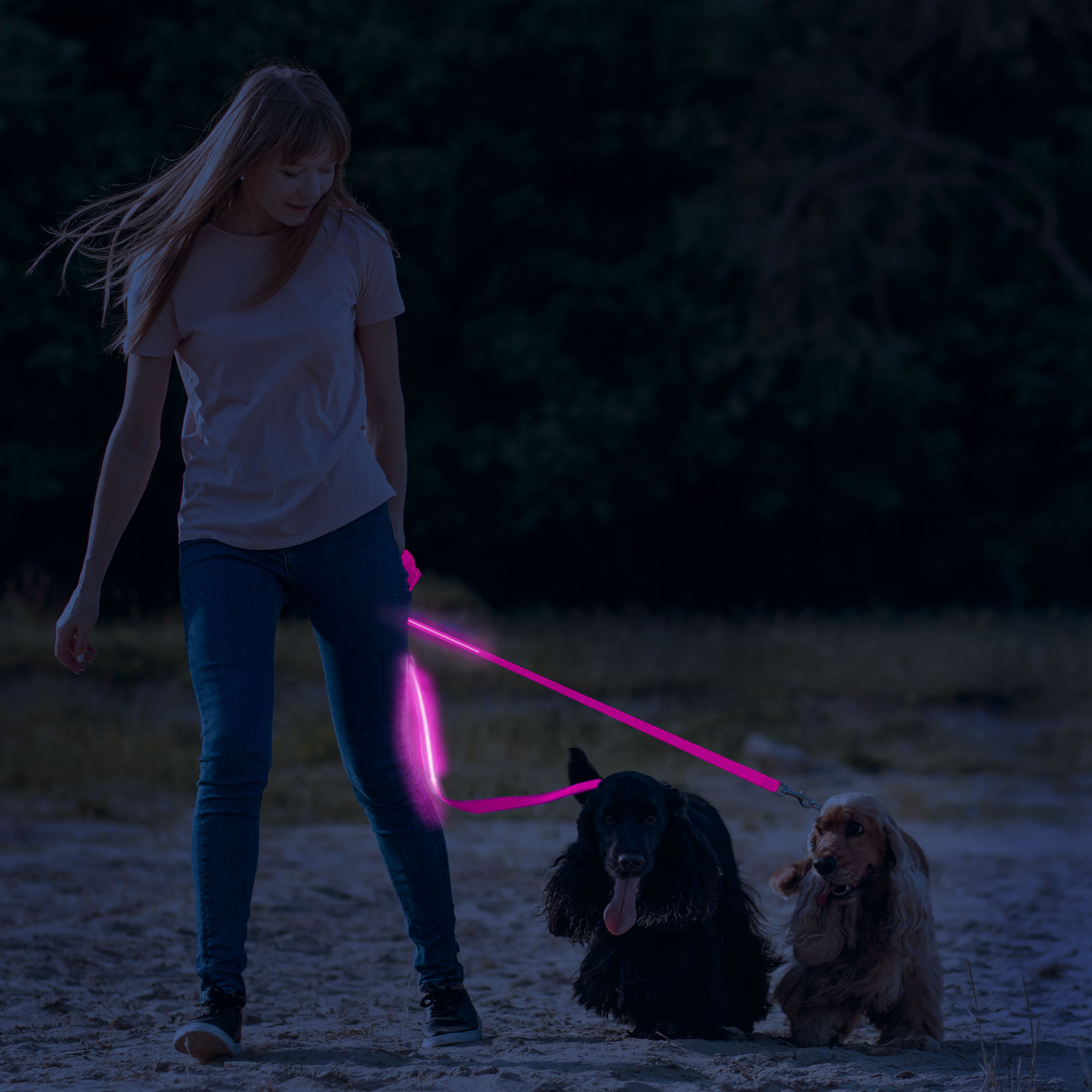 Plibările de seară vor fi de acum făcute în siguranță și vor atrage atenția! Această lesă LED va asigura că tu și câțelul tău sunteți ușor de observat pentru șoferi și bicicliști în timpul plimbărilor. Chiar și în întuneric, veți fi în siguranță.