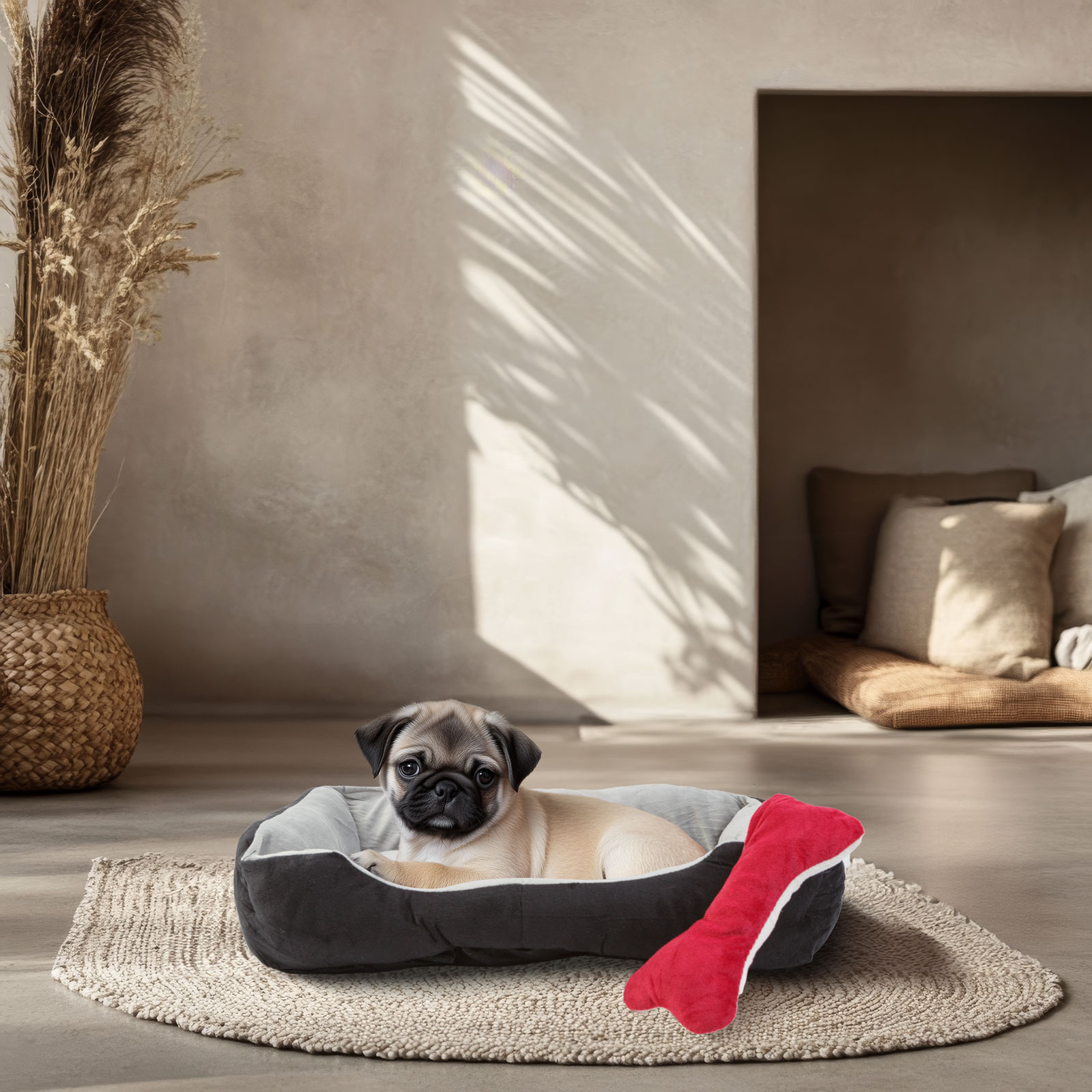 Asigurați confort maxim pentru câinele dvs. de companie! Fundul și părțile laterale gros căptușite oferă un plus de confort, o suprafață de relaxare și un sentiment perfect de siguranță pentru animalul dvs. de companie. Potrivit pentru a dormi noaptea, dar și un loc grozav pentru ca câinii și pisicile să se odihnească după o plimbare lungă. Patul este disponibil în cinci dimensiuni diferite, astfel încât poate fi așezat în cuști și cutii de transport de diferite dimensiuni!