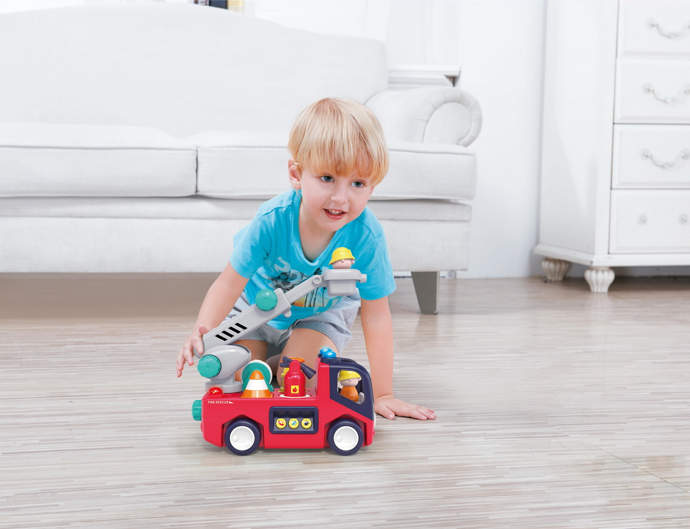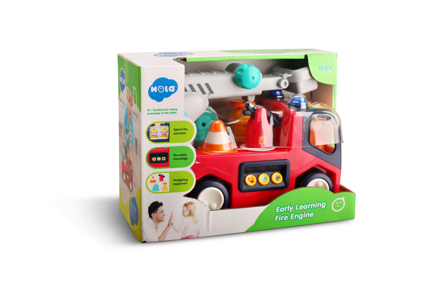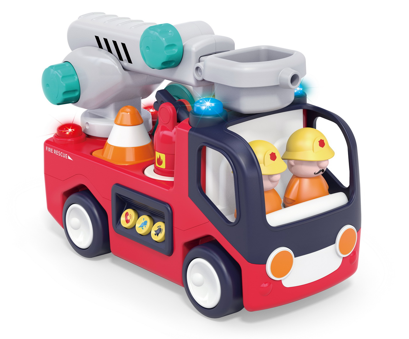 Jucaria masina de pompieri vine doata cu 10 functii pentru constientizarea sigurantei intr-un incendiu. Prezinta doua moduri diferite, unul silentios si unul dinamic. In cel dinamic, sunt prezente scenarii tipice de incendiu. Masina vine dotata cu lumini si efecte sonore diferite. Unetele si melodiile emise de catre aceasta ii starnesc curiozitatea copilului, descoperind noi moduri de a se juca. Jucarie recomandata copiilor cu varsta mai mare de 18 luni.