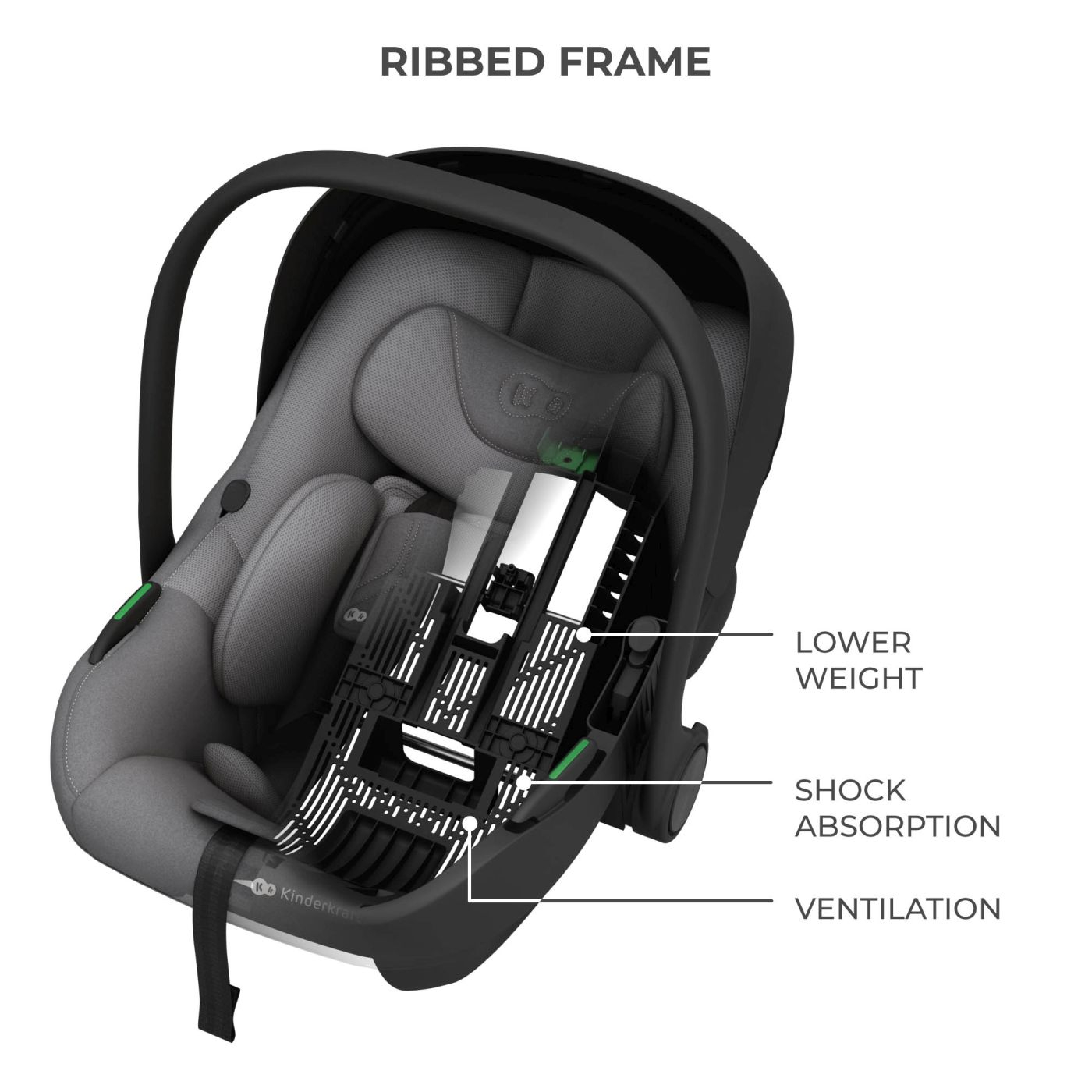 Kinderkraft I-LITE + baza ENDURA SAFE FX un duo ideal pentru primele calatorii in siguranta. Setul contine scoica auto I-LITE (pentru bebelusi 4087 cm) si baza rotativa ENDURA SAFE FX (compatibila si cu I-FIX ENDURA SAFE). Baza este modulara o montezi o singura data si o folosesti ani de zile. Scoica se poate roti la 90° spre usa, ceea ce permite accesul facil la bebelus, mentinand orientarea sigura cu spatele la directia de mers. Montajul se face rapid si stabil, cu sistem ISOFIX si picior de sprijin, iar indicatorii vizuali confirma fixarea corecta. I-LITE este una dintre cele mai usoare scoici de pe piata doar 3,2 kg ideala pentru transportul zilnic. Respecta standardul de siguranta i-Size (R129) si este dotata cu protectii laterale SPS+, centuri in 5 puncte si insert ergonomic ERGO PAD pentru nou-nascuti (pana la 60 cm). Materialele sunt respirabile, cu sistem AIR FLOW si constructie AIR SHELL ventilata, pentru confort termic optim. Copertina este reglabila independent de maner, oferind protectie flexibila impotriva soarelui, vantului sau privirilor indiscrete. Baza include cadru antirotatie jos, oferind mai mult spatiu pentru picioarele copilului in crestere, si are un design compact, ideal si pentru masini mici. Piciorul de sprijin se pliaza pentru depozitare usoara. I-LITE + ENDURA SAFE FX este un inceput excelent pentru sistemul modular Kinderkraft, care poate fi completat cu scaunul I-FIX ENDURA SAFE pentru o solutie adaptata fiecarui stadiu de dezvoltare, de la nastere pana la 12 ani. Specificatii I-LITE Dimensiuni exterioare 65x44x54 cm Dimensiuni interioare 28x27x30 cm Greutate 3,2 kg ENDURA SAFE FX Dimensiuni 50x40x18 cm Greutate 5,6 kg