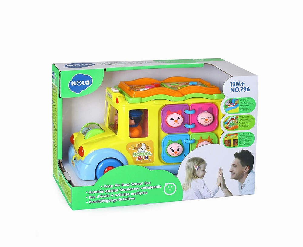 Jucaria Autobuzul scolar cu lumini si sunete de la Hola Toys va oferi copilului dumneavoastra momente pline de distractie si veselie, iar dumneavoastra, privindu-l, zambete. Contine 8 tipuri de jocuri, care sunt simple dar extrem de benefice pentru dezvoltarea inteligentei si atrag curiozitatea copilului in timpul jocului. Sunetele emise de catre aceasta ii starnesc curiozitatea, descoperind noi moduri de a se juca. Dezvolta perceptia vizuala si auditiva si coordonarea dintre maini si ochi. Formele speciale si culorile vii incurajeaza copilul sa exerseze si sa se joace stimuland astfel dezvoltarea individuala. Imaginile produsului sunt cu titlu de prezentare, culorile anumitor mici elemente pot varia. Produsul este recomandat de la varsta de 18 luni +. Functioneaza cu 3 baterii AA de 1.5v ce sunt incluse. Dimensiuni produs 24.5cm L x 12cm l x 13.5cm h. Pretul acestui produs include taxa de timbru verde.