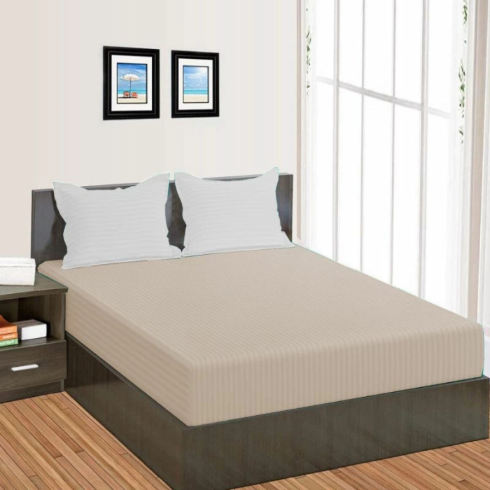 Cearceaf de pat cu elastic damasc policoton dunga 1 cm- capucino