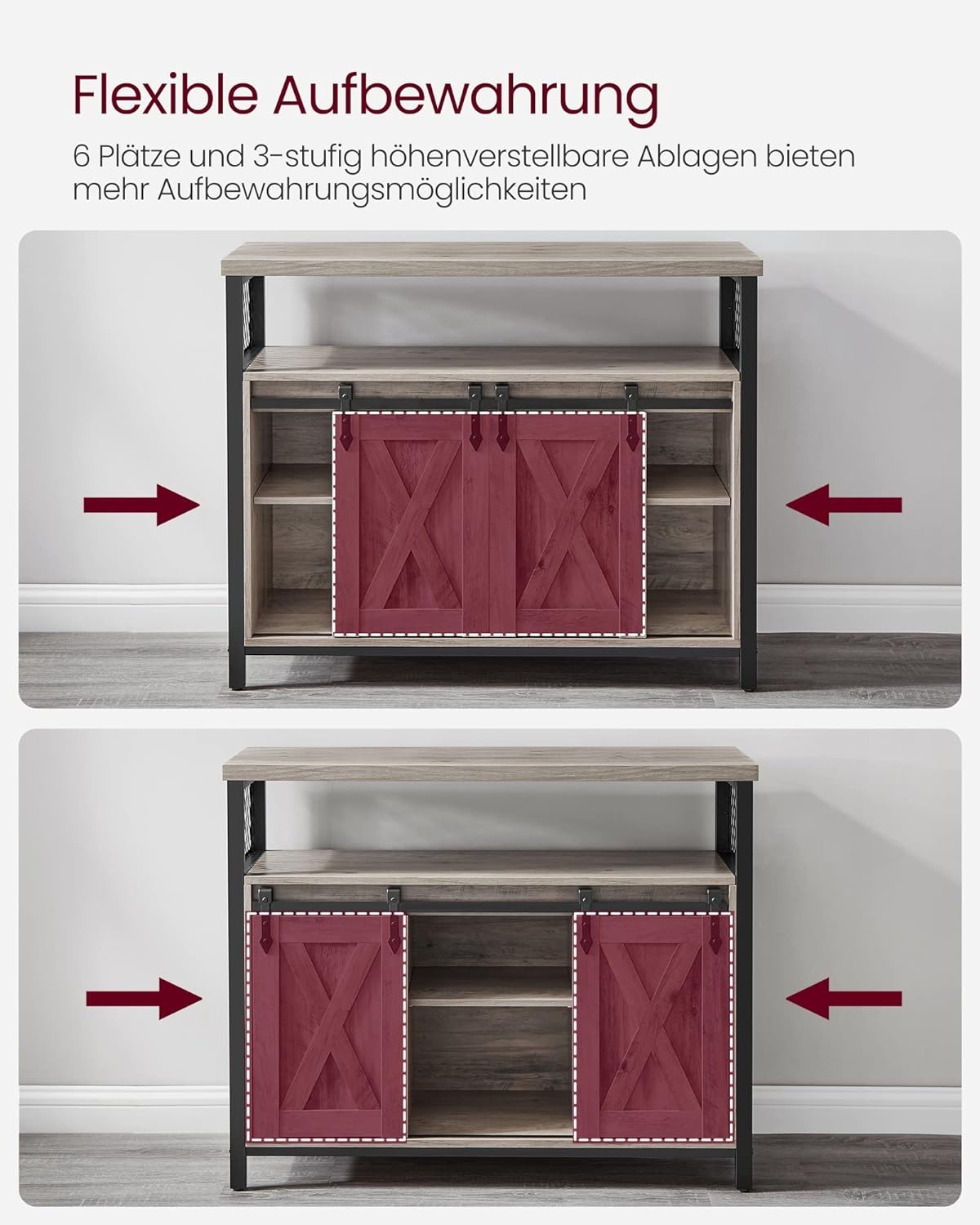 VASAGLE Comoda pentru living sau bucatarie, cu 2 usi glisante, rafturi reglabile, stil rustic, 33x100x80cm, gri