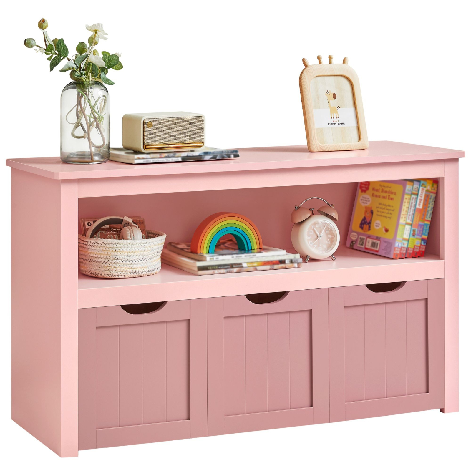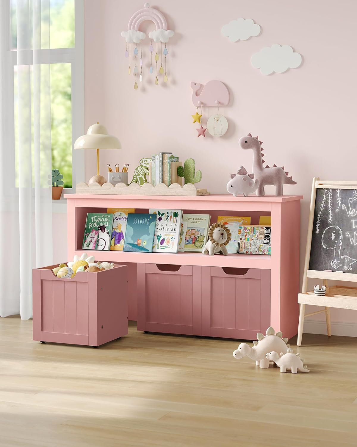 Detalii produs: Culoare: roz pastel Material: MDF (MDF) Dimensiuni: 30 x 102 x 60 cm (P x l x i) Capacitate maxima de incarcare statica a suprafetei: 272 kg Note: Din motive de siguranta, copiii nu au voie sa se urce pe raftul de jucarii sau sa se joace cu acesta. Despre acest articol Aduceti ordine si stil: Cartile ilustrate si jucariile sunt imprastiate peste tot? Cu acest raft pentru copii, puteti face ordine in toate. Datorita suprafetei bej si a aspectului simplu, se potriveste in camera de zi, in dormitor sau in camera copiilor. Design prietenos pentru copii: Copilul dvs. poate scoate cu usurinta cele 3 cutii - fiecare cu 4 roti - decupajele ajuta la evitarea ciupirii mainilor; raftul pentru copii are 60 cm inaltime si copilul dvs. poate ajunge cu usurinta la jucariile lor. Design inteligent: O zona de depozitare in partea de sus, un compartiment deschis, 3 cutii (29 x 30 x 28 cm) in partea de jos. Acest dulap pentru jucarii ofera suficient spatiu pentru toate: mingi, papusi, blocuri de constructie si carti cu imagini pot fi frumos sortate si depozitate convenabil. Materialele de inalta calitate: Realizat din panouri MDF solide si metal, acest raft pentru jucarii asigura o fixare stabila si va insoteste pe dvs. sau pe copiii dvs. timp de multi ani. Asamblare: Urmati instructiunile clare pentru a asambla rapid piesele marcate cu instrumentul inclus. Apoi aduceti totul in ordine cu noul dvs. raft pentru copii.
