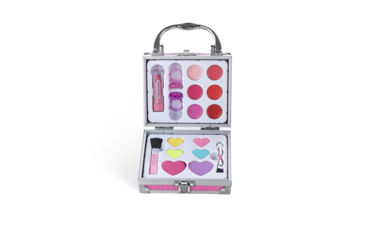 Aceasta servieta include tot ce au nevoie cei mici de acasa pentru a crea look-uri de machiaj incredibile. Fardurile de pleoape sunt netede si usor de aplicat, iar luciul de buze au o stralucire stralucitoare care il va face pe micutul tau sa arate radiant. Inelele si rujul sunt atingerea perfecta pentru a completa orice aspect de machiaj. Aceasta husa este cadoul perfect pentru orice copil care iubeste machiajul si aventurile. Ajut-o sa devina propriul ei super-erou cu noua cutie de machiaj din colectia Super Girl! Pachetul contine 6 farduri de ochi, 6 luciu de buze, 2 inele, 1 ruj, 1 pensula, 1 aplicator. Ingrediente Blush Talc, Mica, Palmitat De Etilhexil, Caolina, Dimeticona, Polibutena, Stearat De Magneziu, Bis-Digliceril Poliaciladipat-2, Silice, Meticona, Fenoxietanol, Etilhexilglicerina, Acetat De Tocoferil. Poate Contine Ci 454102. Coloranti Ci 158501, Ci 158502. Ingrediente Farduri Talc, Mica, Palmitat De Etilhexil, Caolina, Dimeticona, Polibutena, Stearat De Magneziu, Bis-Digliceril Poliaciladipat-2, Silice, Meticona, Fenoxietanol, Etilhexilglicerina, Acetat De Tocoferil. Poate Contine Ci 77742. Coloranti Ci 77007, Ci 77499, Ci 77891, Ci 420902, Ci 160351, Ci 191401, Ci 77491, Ci 77492. Ingrediente Ruj Ulei Mineral, Polietilena, Polibutena, Poliizobutena Hidrogenata, Palmitat De Etilhexil, Parafina, Ceara Microcristalina, Acid Hidroxistearic, Ulei De Floarea Soarelui, Triglicerid Caprilic/Capric, Copolimer Stiren/Butadiena, Tocoferol, Hectorit Disteardimoniu, Fenoxietanol, Etilhexilglicerina, Acetat De Tocoferil, Carbonat De Propilen, Parfum. Poate Contine Ci 77891. Coloranti Ci 45410, Ci 158502. Ingrediente Luciu De Buze Ulei Mineral, Polibutena, Ceara Microcristalina, Octildodecanol, Ceara Sintetica, Polietilena, Bht, Fenoxietanol, Etilhexilglicerina, Acetat De Tocoferil, Parfum. Poate Contine Ci 77891. Coloranti Ci 158501, Ci 45410, Ci 158502, Ci 77491, Ci 77492, Ci 19140. Martinelia este un brand care face parte din grupul Aquarius Cosmetic SL , principalul distribuitor de parfumuri si cosmetice in Spania inca din anul 1995. in ziua de astazi, brandul se gaseste in toata lumea, nu doar in Spania. Produsele brandului la Martinelia pot fi recunoscute cu usurinta datorita ambalajului unic si jucaus. in oferta brandului Martinelia veti gasi seturi de cadouri, accesorii pentru par, popularele balsamuri de buze aromate si alte accesorii care vin in ambalaje haioase. Copiii vor fi incantati de produse precum setul decorativ in forma de ursulet, peria de par unicorn sau periuta de dinti cu sirene. Martinelia ofera pentru cei mici o gama larga de produse distractive si inovatoare in toate culorile curcubeului. Seturi de machiaj, rujuri si tot felul de produse si accesorii concepute pentru a tine pasul cu ultimele tendinte. Produsele sunt sigure si prietenoase cu mediul fiind special proiectate pentru a putea fi folosite de copii.