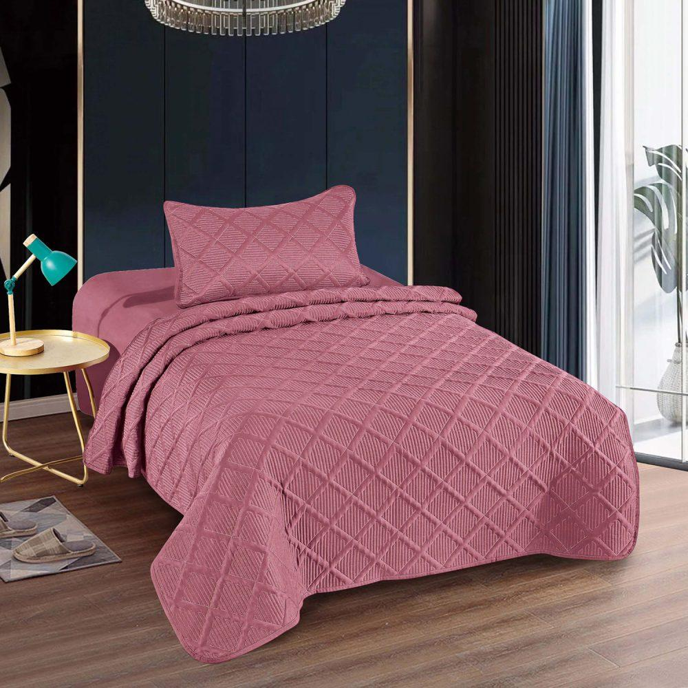 Cuvertură pat uni o persoană + o față pernă (burgundi deschis)
