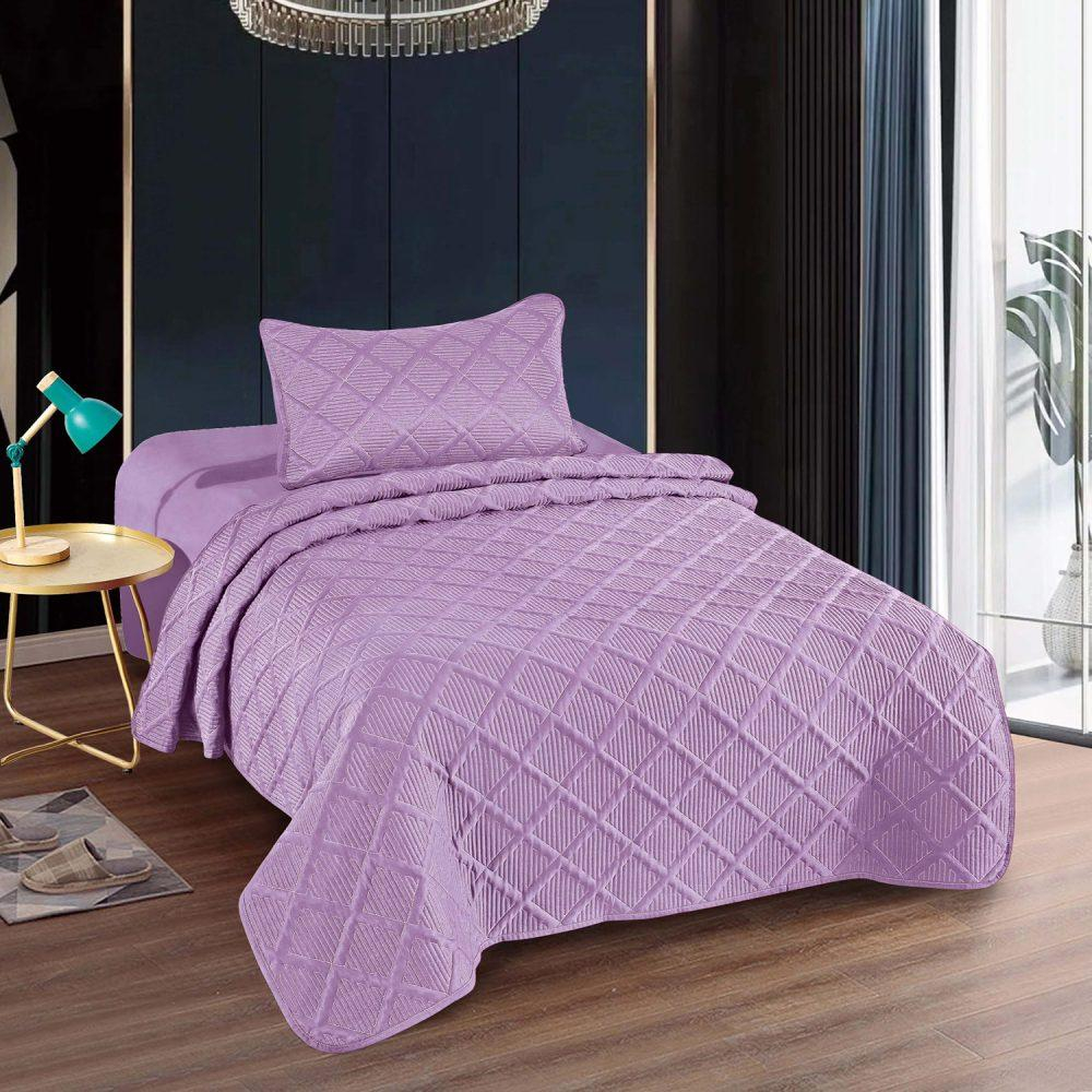 Setul include și două fețe de pernă, care completează perfect aspectul patului tău. Fiecare față de pernă este realizată cu aceeași atenție la detalii, cu matlaseu în romburi și finisaje impecabile, adăugând un plus de confort și stil. Aceste fețe de pernă sunt atât decorative, cât și funcționale, fiind ideale pentru a crea un decor coerent și rafinat.