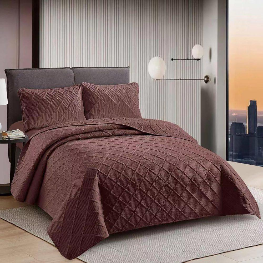 Setul include și două fețe de pernă, care completează perfect aspectul patului tău. Fiecare față de pernă este realizată cu aceeași atenție la detalii, cu matlaseu în romburi și finisaje impecabile, adăugând un plus de confort și stil. Aceste fețe de pernă sunt atât decorative, cât și funcționale, fiind ideale pentru a crea un decor coerent și rafinat.