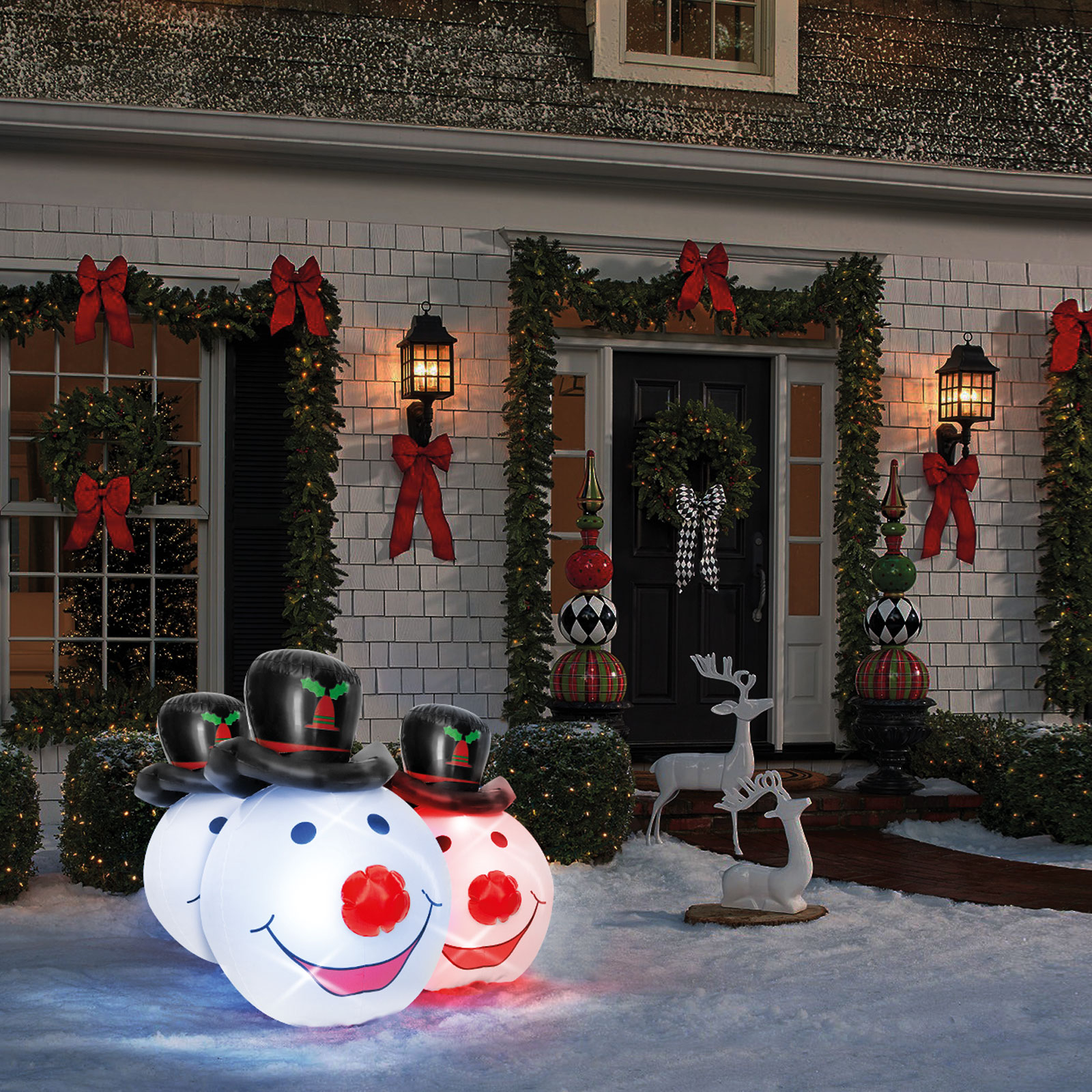 Cel mai nou și inovator instrument de decor pentru sezonul de Crăciun este capul gonflabil și intermitent al omului de zăpadă cu LED-uri. Datorită dimensiunilor sale mari, poate fi plasat în grădini mai mari. Unitatea LED din interiorul omului de zăpadă luminează interiorul balonului cu o lumină roșie și albastră intermitentă. LED-urile sunt alimentate de baterii de monede nedetașabile.
