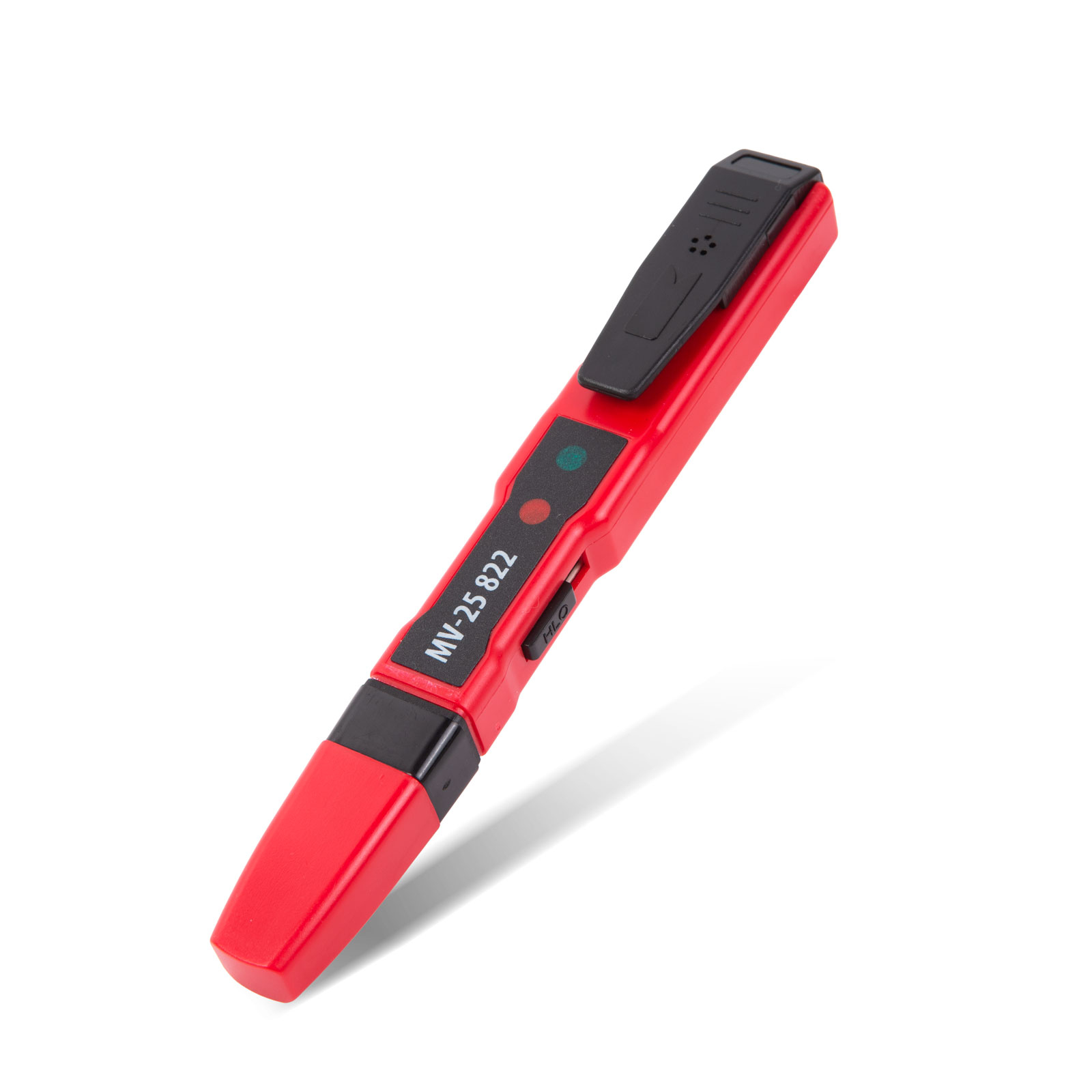 Combină avantajele creionului tradițional de fază și detectorilor de tensiune fără contact. Potrivit pentru detectarea tensiunii AC la prize, canale de cabluri, întrerupătoare și fire. Datorită formei sale confortabile, încape chiar și în buzunar. Creion tradițional de fază, cu ajutorul căruia poți verifica ușor și rapid care este cablul de fază (în direct). Testerul este potrivit pentru detectarea la atingere a tensiunii între 70 - 250 V AC. Dacă lumina este aprinsă, este un cablu de fază (sub tensiune). Dacă lampa nu se aprinde și se aude un semnal sonor, tensiunea de pe cablul testat este mai mică de 70 V AC. Pentru testarea fără contact, poate fi utilizat până la 70 - 1000 V AC. În timpul utilizării în modul fără contact, nici una dintre suprafețele sale nu intră în contact metalic cu suprafața de măsurat, minimizând astfel riscul de șoc electric, astfel încât poziția fazei poate fi determinată și mai sigur.