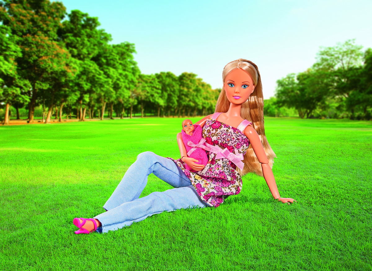 Papusa Steffi Insarcinata este deosebita, ea arata ca o Mamica gravida adevarata!Cu ajutorul acestei papusi interesante, copiii pot face cunostinta cu anatomia unei femei insarcinate.Ea are un bebelus in burtica care poate fi scos. Papusa se poate transforma din gravida in papusa obisnuita, dupa ce copilul se va naste. Jocul cu aceasta Papusa Steffi Insarcinata, va fi pe placul tuturor fetitelor! Papusa Steffi are o inaltime de 29cm.