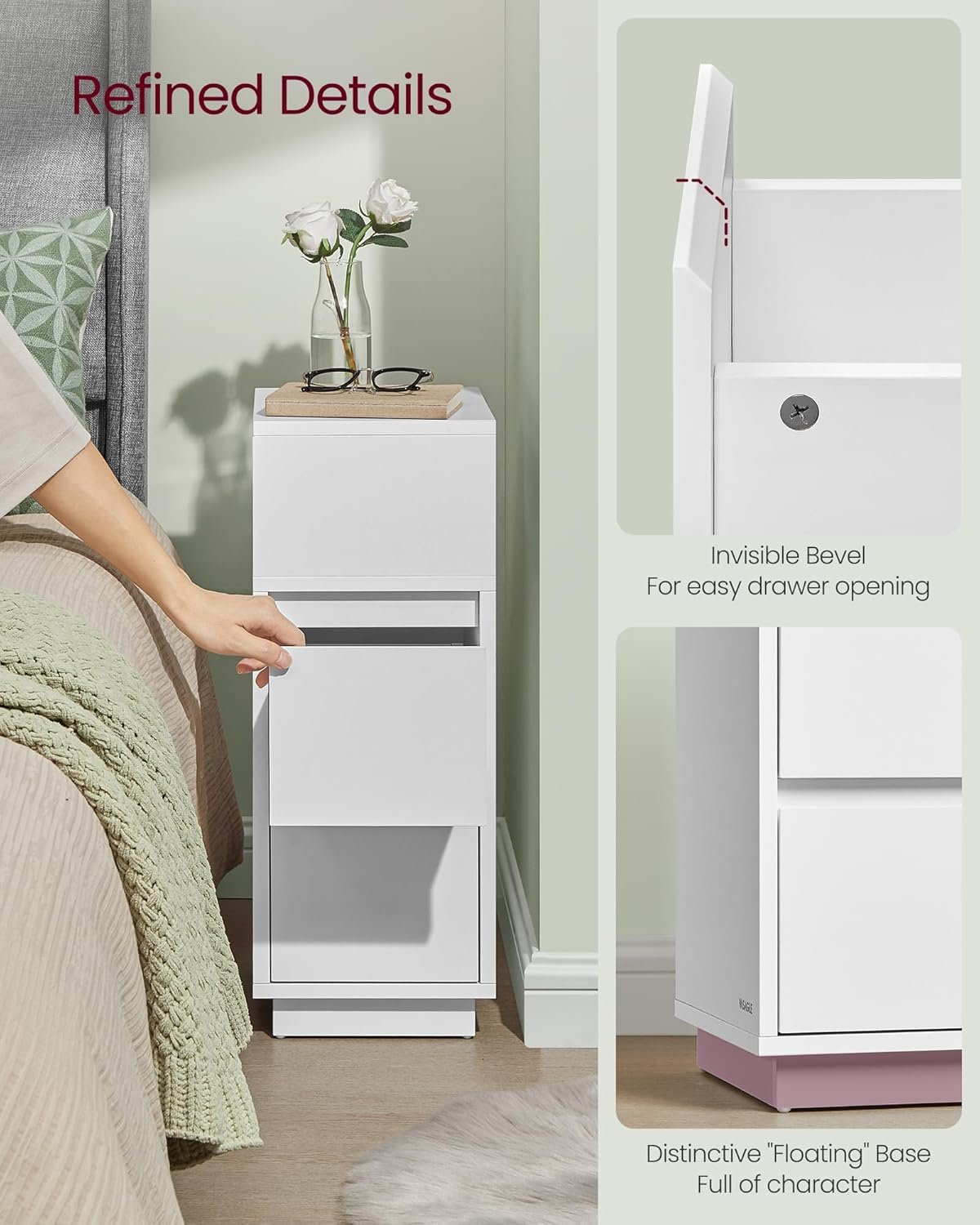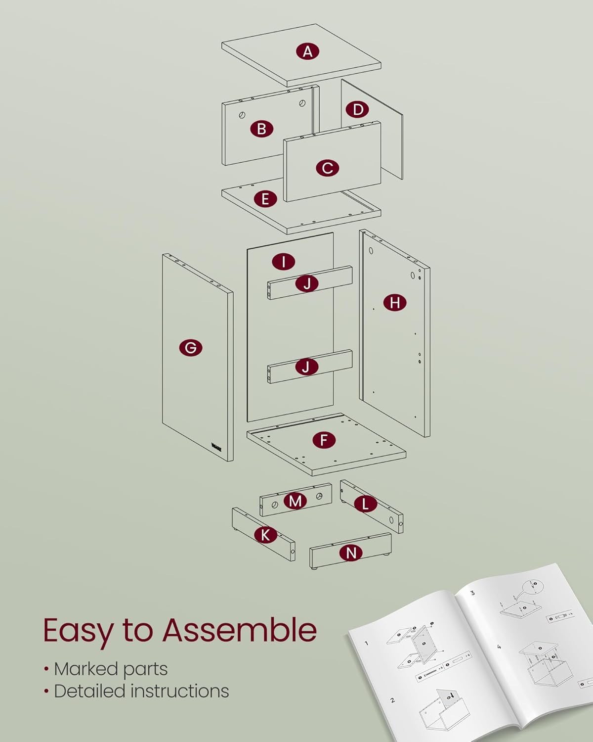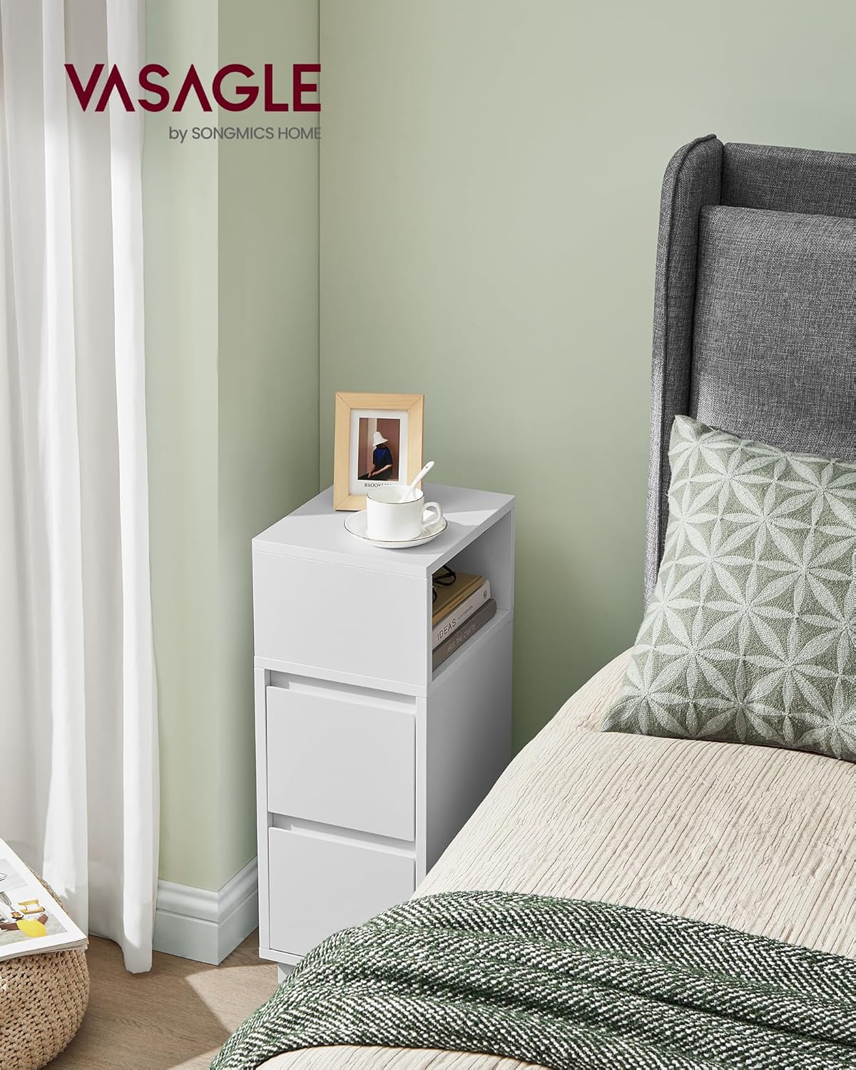 Specificatii tehnice Brand: VASAGLE Model: LET656W01 Culoare: Alb Material: PAL si MDF Dimensiuni produs: 30 x 25 x 65 cm Numar sertare: 2 Compartimente deschise: 1 (montaj stanga/dreapta) Greutate produs: 9,6 kg Greutate maxima sustinuta: 45,4 kg (blat), 4,5 kg (fiecare sertar) Asamblare necesara: Da Scurta descriere Noptiera VASAGLE este conceputa pentru spatii mici, oferind functionalitate fara a ocupa mult loc. Cu 2 sertare si un compartiment deschis reglabil stanga/dreapta, pastreaza ordinea si adauga un plus de eleganta in dormitor sau living. Caracteristici principale Design ingust, ideal pentru spatii reduse 2 sertare spatioase pentru obiecte personale Structura rezistenta din PAL si MDF Suporta pana la 45,4 kg pe blat Asamblare usoara cu instructiuni detaliate